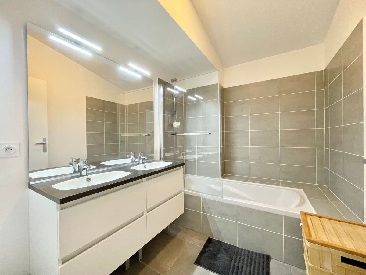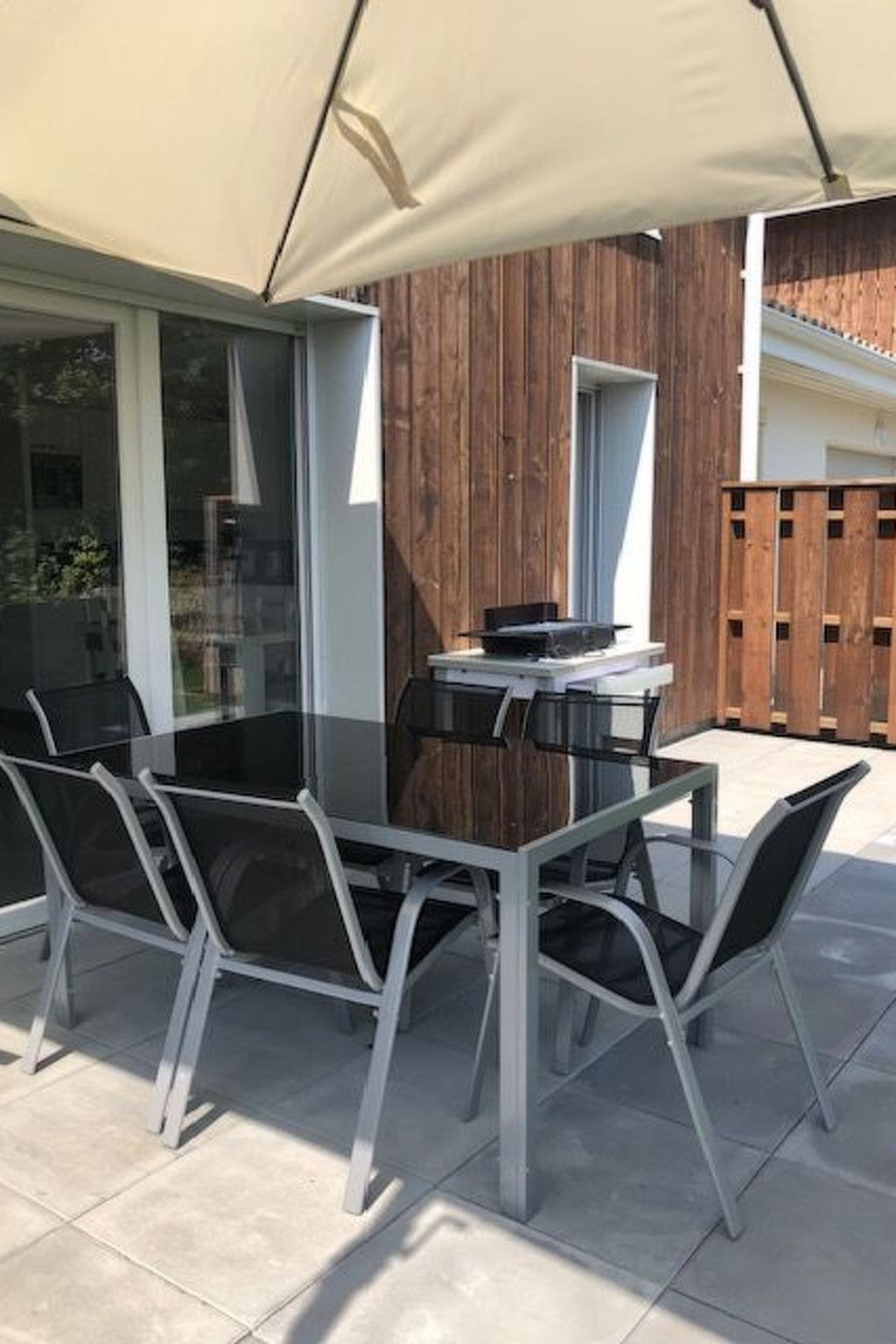 Une terrasse de 20 m², équipée d'un parasol, d'une table à manger de six places et d'un petit barbecue électrique, invite à des repas en plein air, tandis qu'une terrasse bois de 6 m² ombragée complète cet espace extérieur avec un salon de jardin, tout cela dans un terrain individuel clôturé.