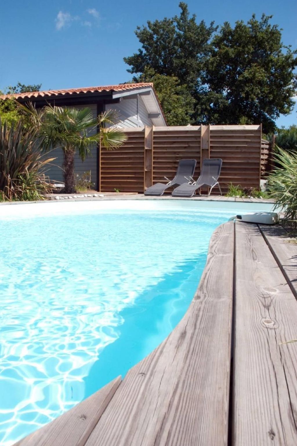 Trois grandes baies vitrées vous ouvrent l’accès à la piscine chauffée et au jacuzzi pour d’agréables soirées de détente après la plage, sorties à vélo, surf, accrobranche, ou encore parcours de golf et nombreuses autres activités proposées dans la région.