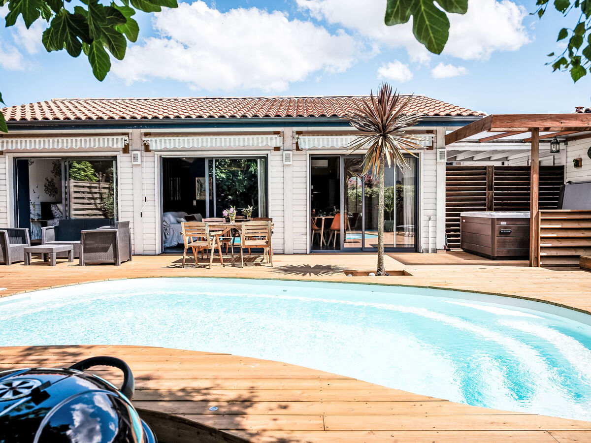 Trois grandes baies vitrées vous donnent accès à la piscine chauffée et au spa pour des soirées agréables de détente après la plage, le vélo, le surf, l'accrobranche, ou encore les parcours de golf et de nombreuses autres activités proposées dans la région.