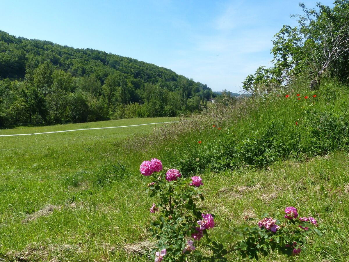 Down in the valley, after 4 km, you will find the Way of St James and the pilgrimage town of Lauzerte, which is one of the most beautiful villages in France (with restaurants, market, pharmacy, kiosks, bakery and supermarket), within a radius of 20 km, equally well-known places such as Montaigu du Quercy with its beautiful beach and hire boats, Montcuq with its splendid market, Roquecor, whose first traces of a settlement date back to the Bronze Age, in particular at the cave site "Lou Roc des Nobis", which lies below the village.