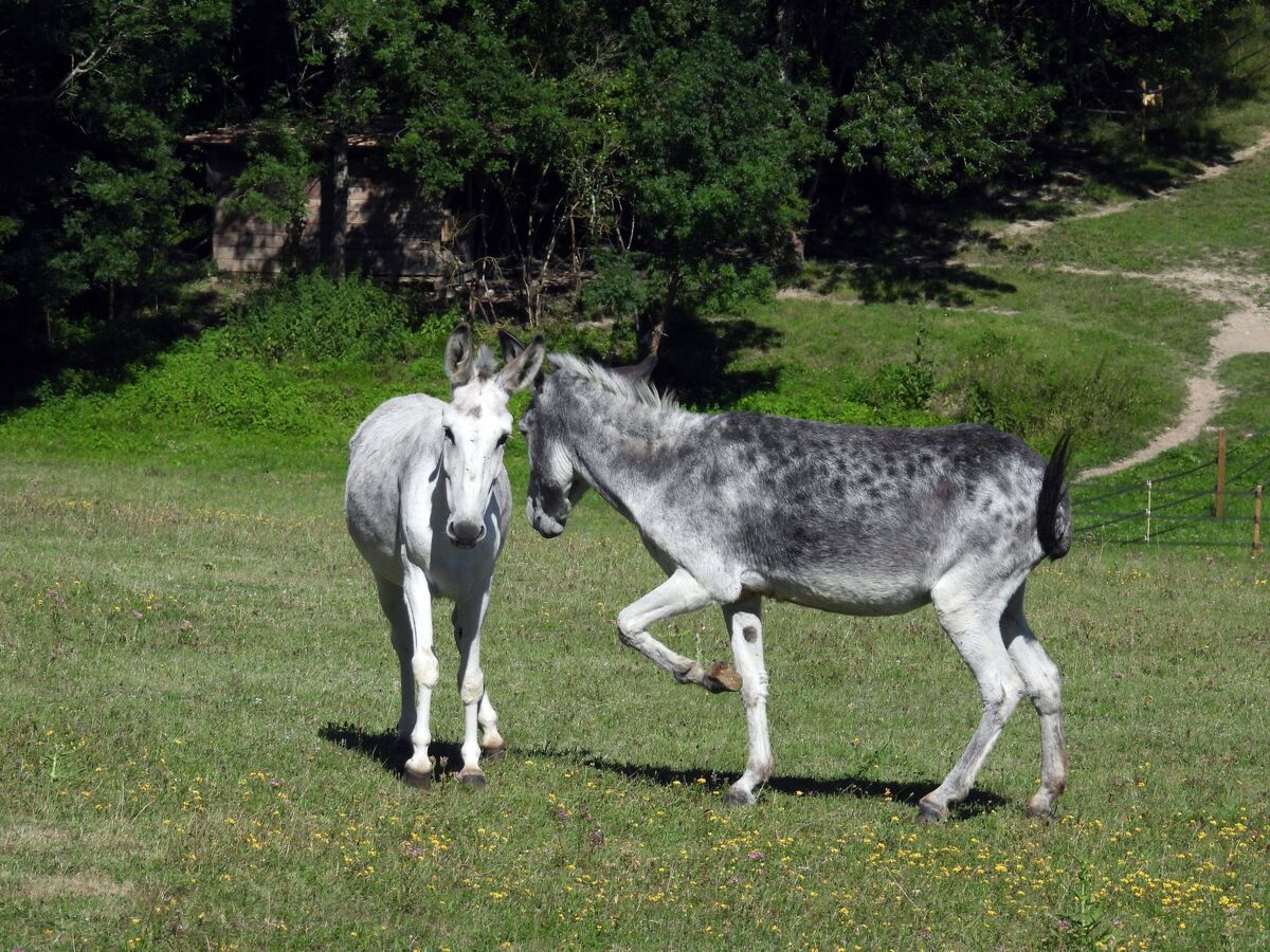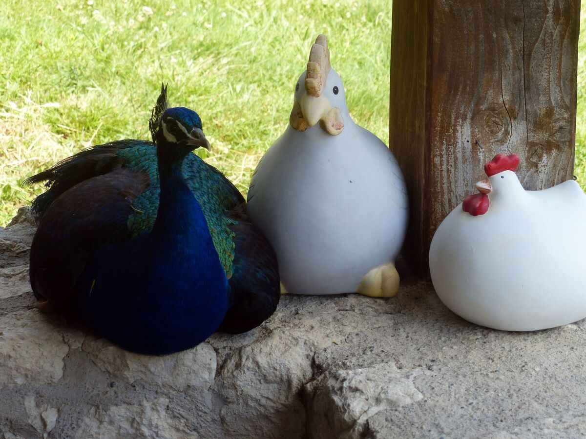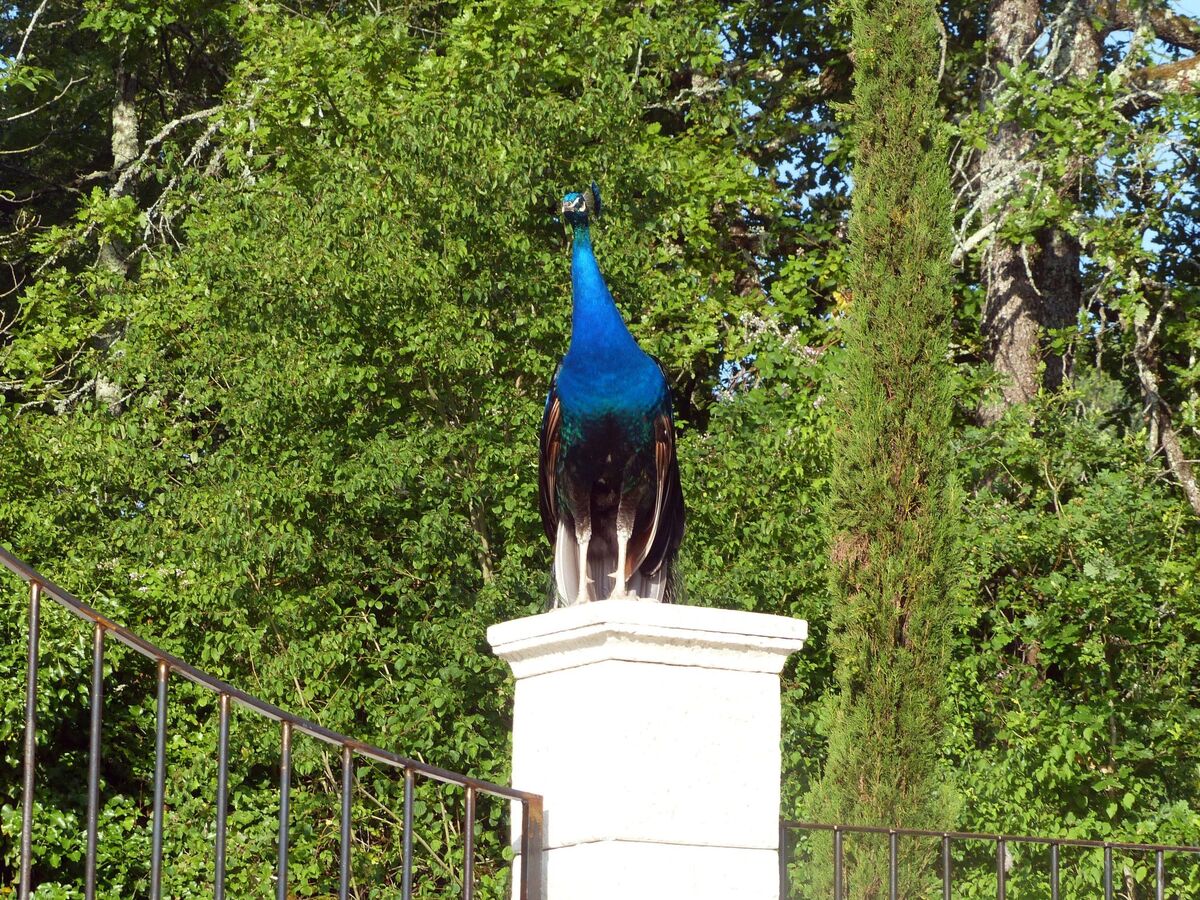 The peacock farm and the 3 hectares of pastureland belonging to it are populated by 3 donkeys, 7 cats, 2 dogs and 6 peacocks.