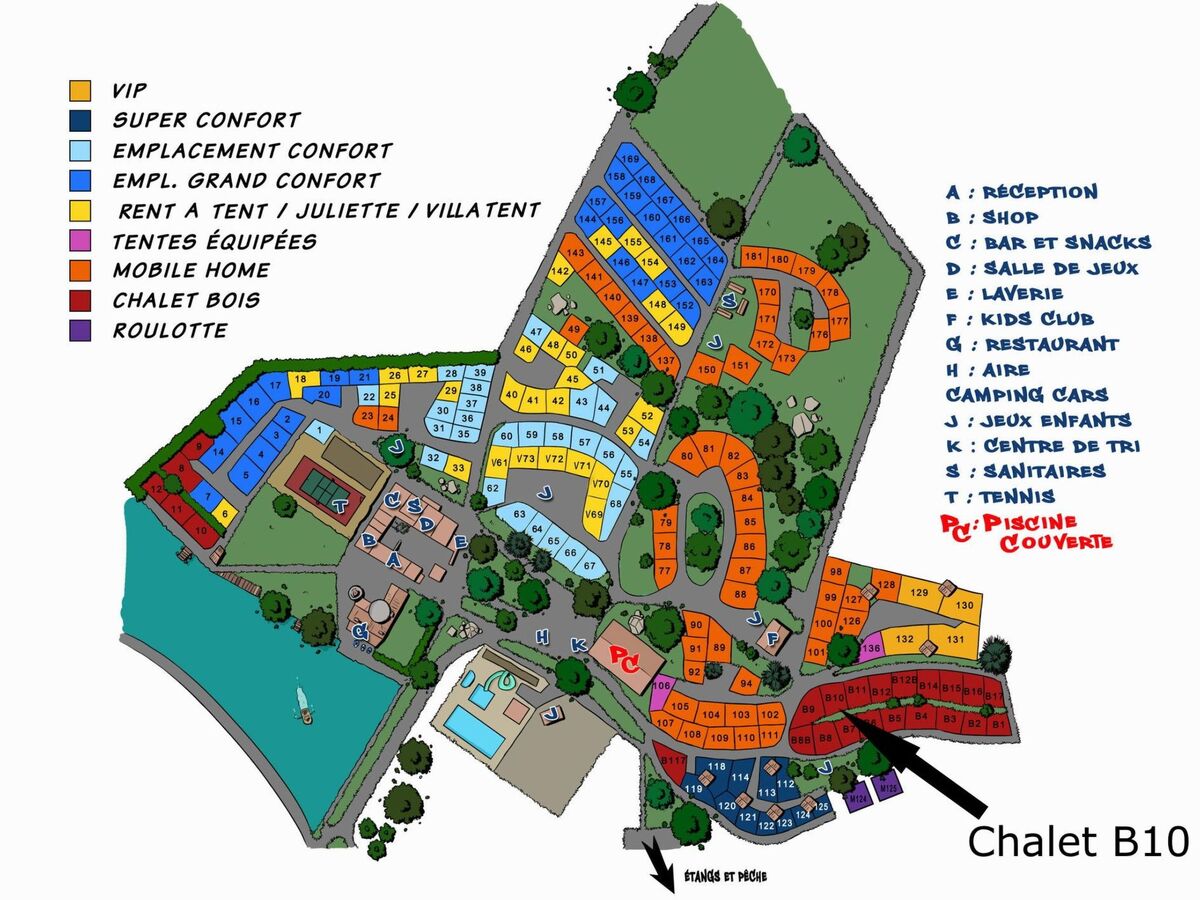 Domain itself has 3 swimming pools of which 1 is covered, sports facilities, fishing ponds & lakes, playground, restaurant in castle, patio with bar and shop, ...