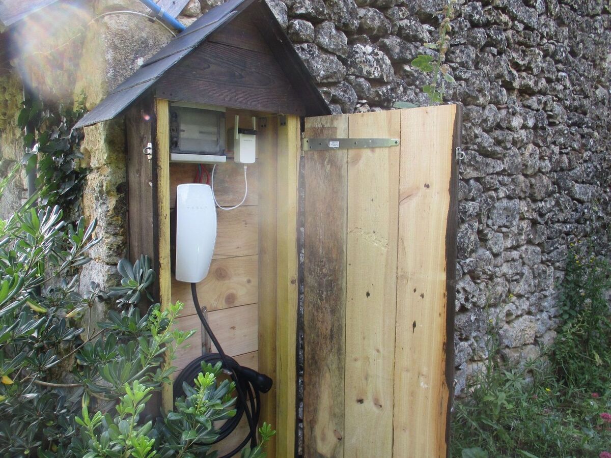 Un grand abri avec une table de ping-pong, baby-foot et un barbecue à bois est également à disposition, ainsi qu'un parking sur la propriété équipé d'une borne de recharge pour véhicule électrique type2 de marque Tesla.