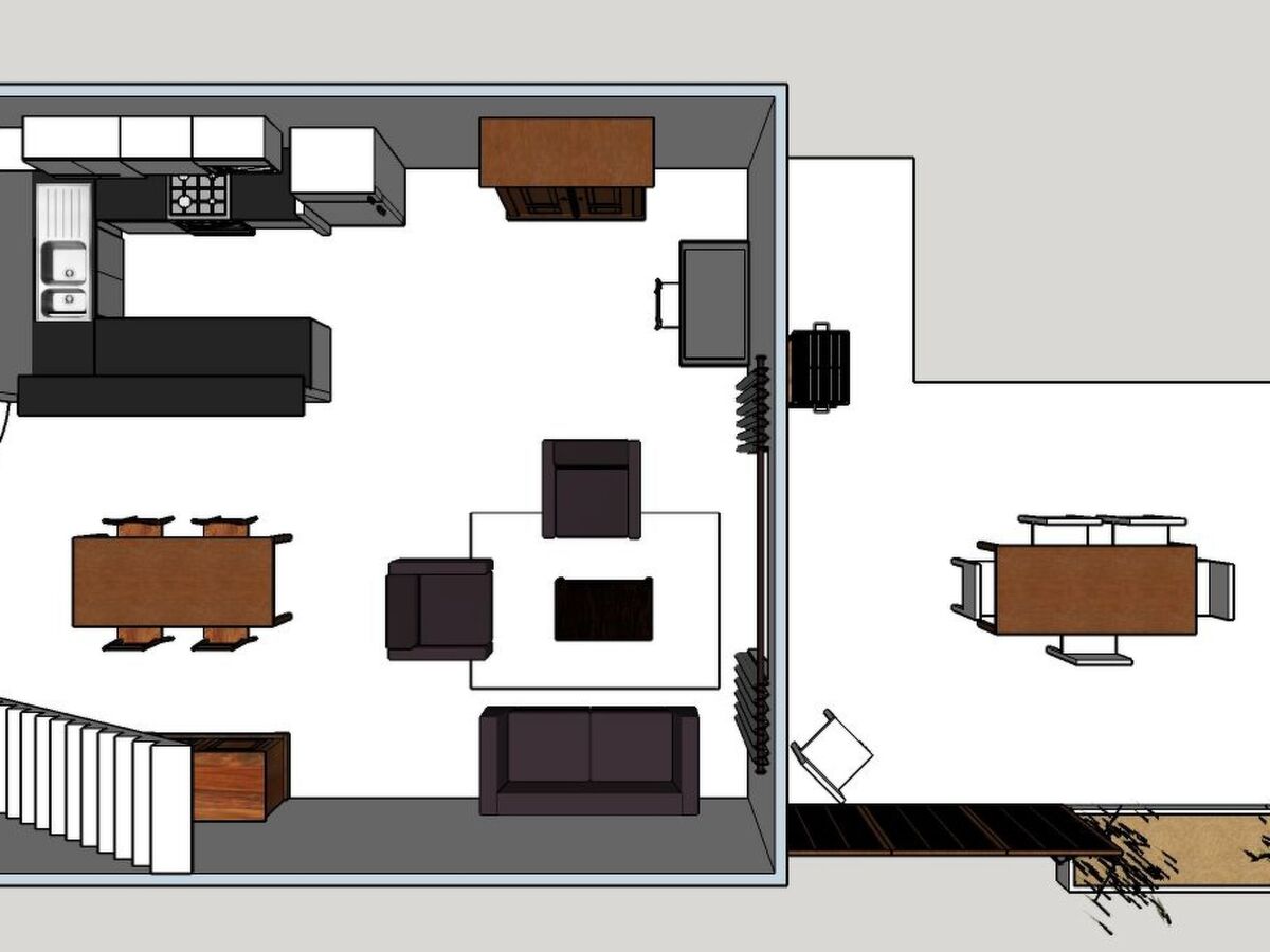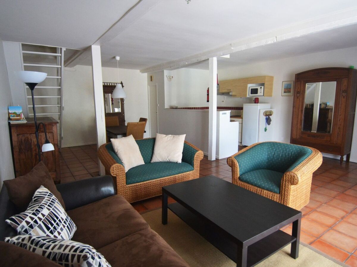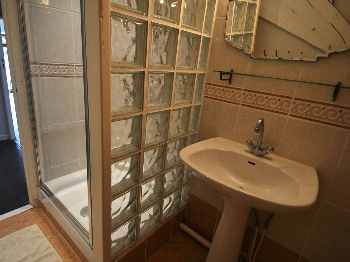 The ground floor has a spacious living room, a well-equipped open-plan kitchen with dishwasher, vitroceramic hob, microwave, fridge-freezer, coffee machine, kettle, toaster and plenty of crockery and cutlery, and a separate storage room.