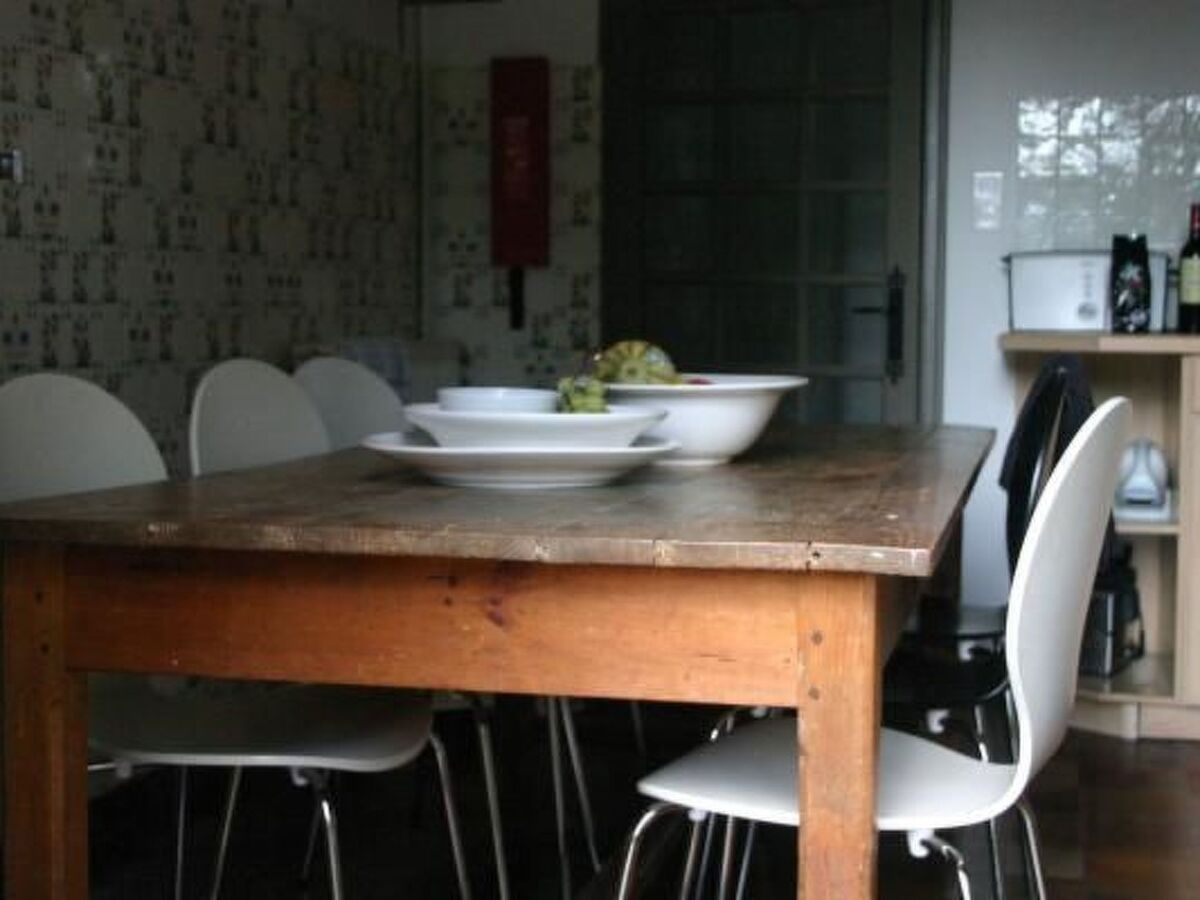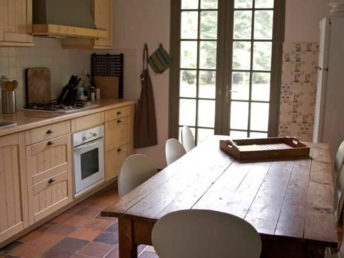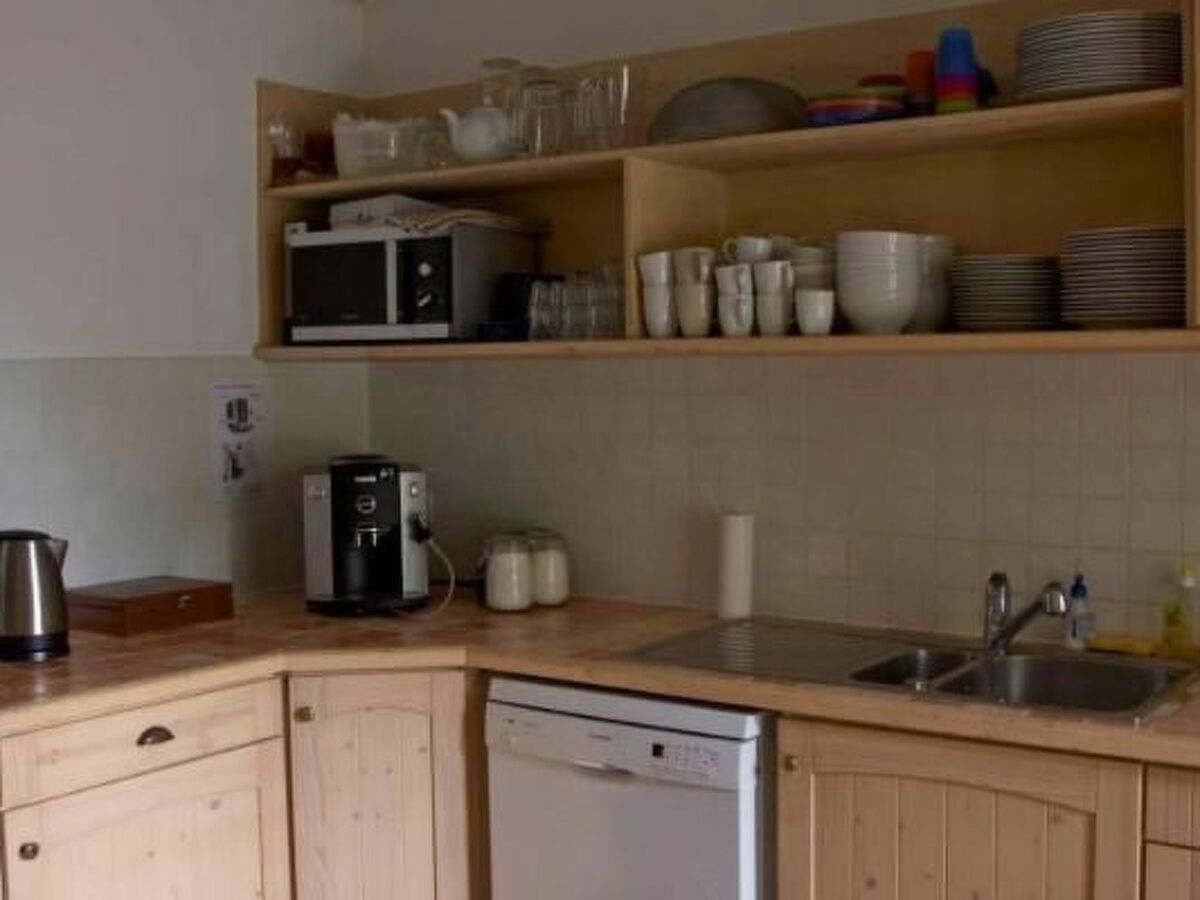 The kitchen is fully equipped with an oven, a fridge freezer, a dishwasher, a microwave, a toaster, a kettle, a coffee machine and a large dining table, leaving nothing to be desired.