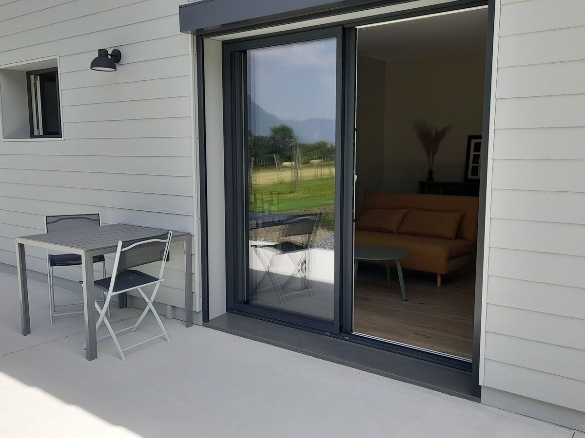 A la belle saison, vous pourrez prendre vos repas sur la belle terrasse privative avec vue sur les montagnes.