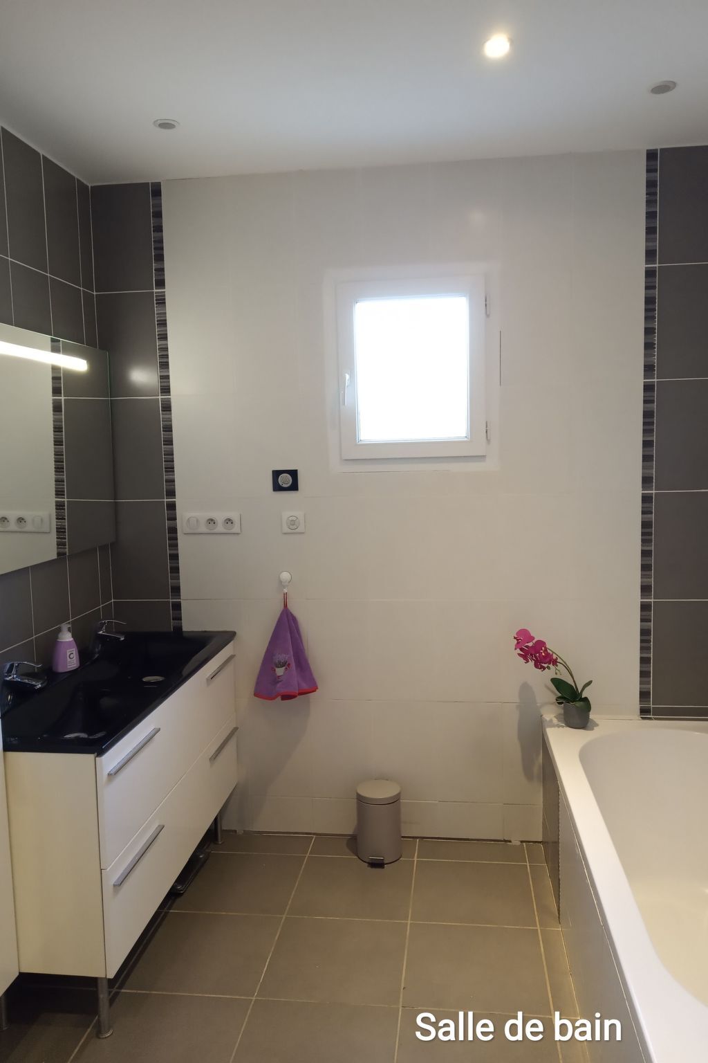 - salle de bain avec douche, baignoire, lavabo double vasques,
