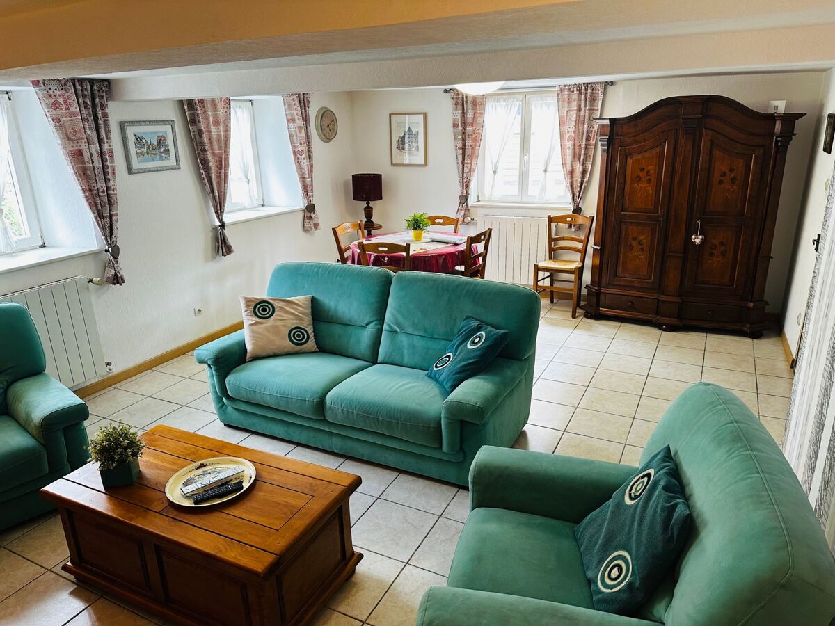La maison alsacienne se trouve dans une grande cour de ferme fermée, dans laquelle se trouve un espace salon de jardin, barbecue, parking et un garage.