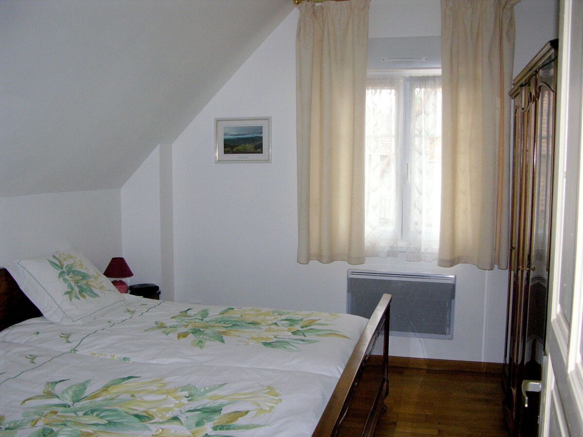 A l' étage 2 chambres à coucher où se trouvent un lit double pour la 1ère et 2 lits simples pour la 2ème + 1 lit bébé ; un salon , un téléviseur à écran plat et un canapé lit à 2 places ; une salle de bain avec wc