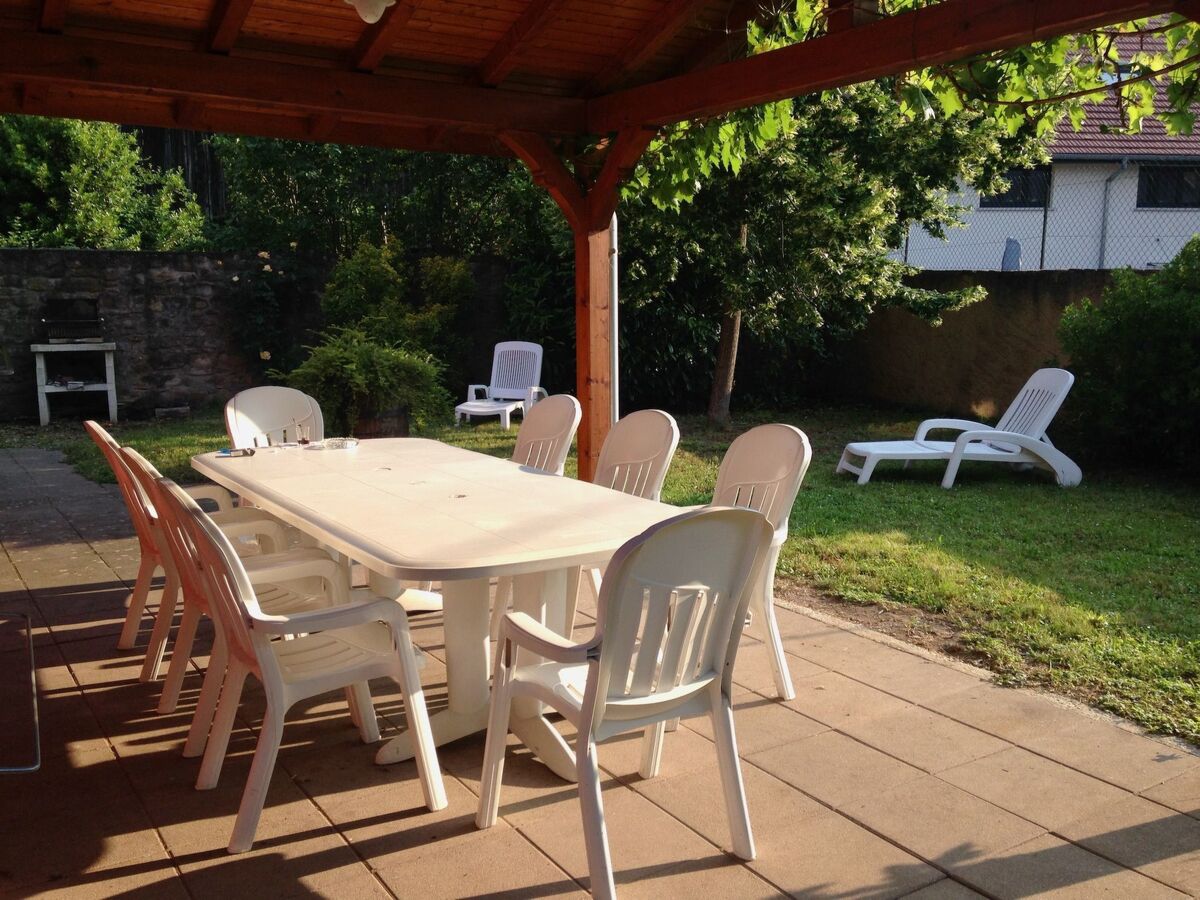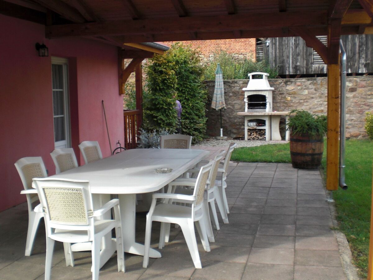La terrasse couverte dispose d’un salon de jardin, barbecue.
