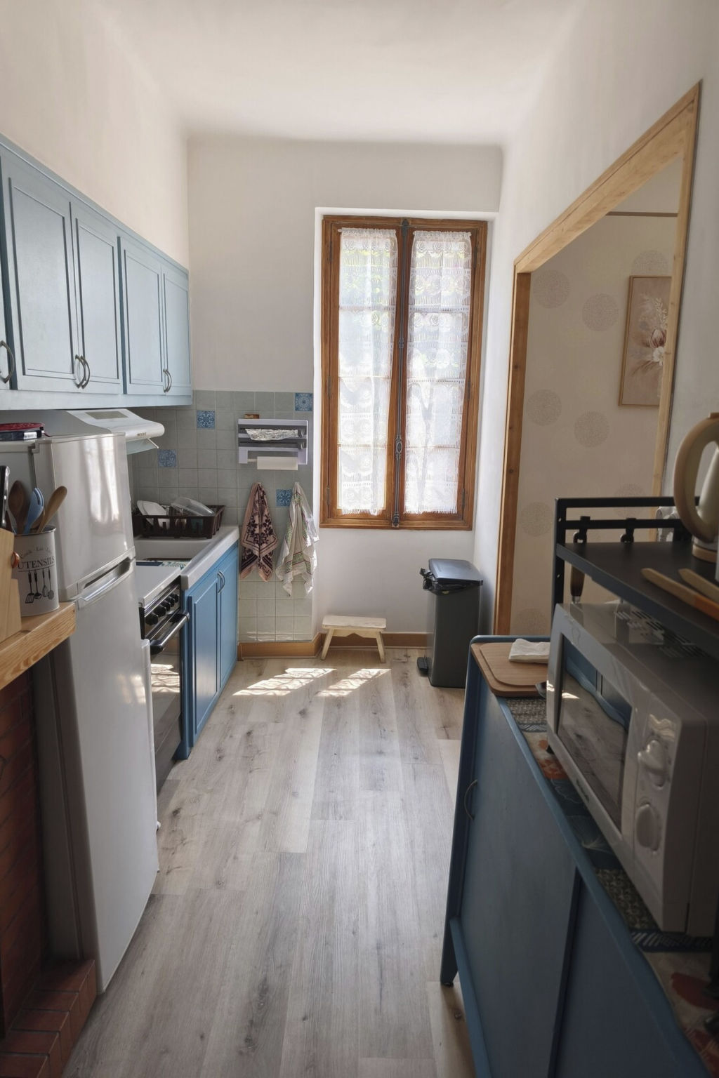 La cuisine, parfaitement équipée pour satisfaire tous vos besoins culinaires, comprend un frigo, un micro-ondes, une machine à café, un grille-pain, une bouilloire, ainsi que toute la vaisselle et les ustensiles nécessaires à la préparation de vos repas.