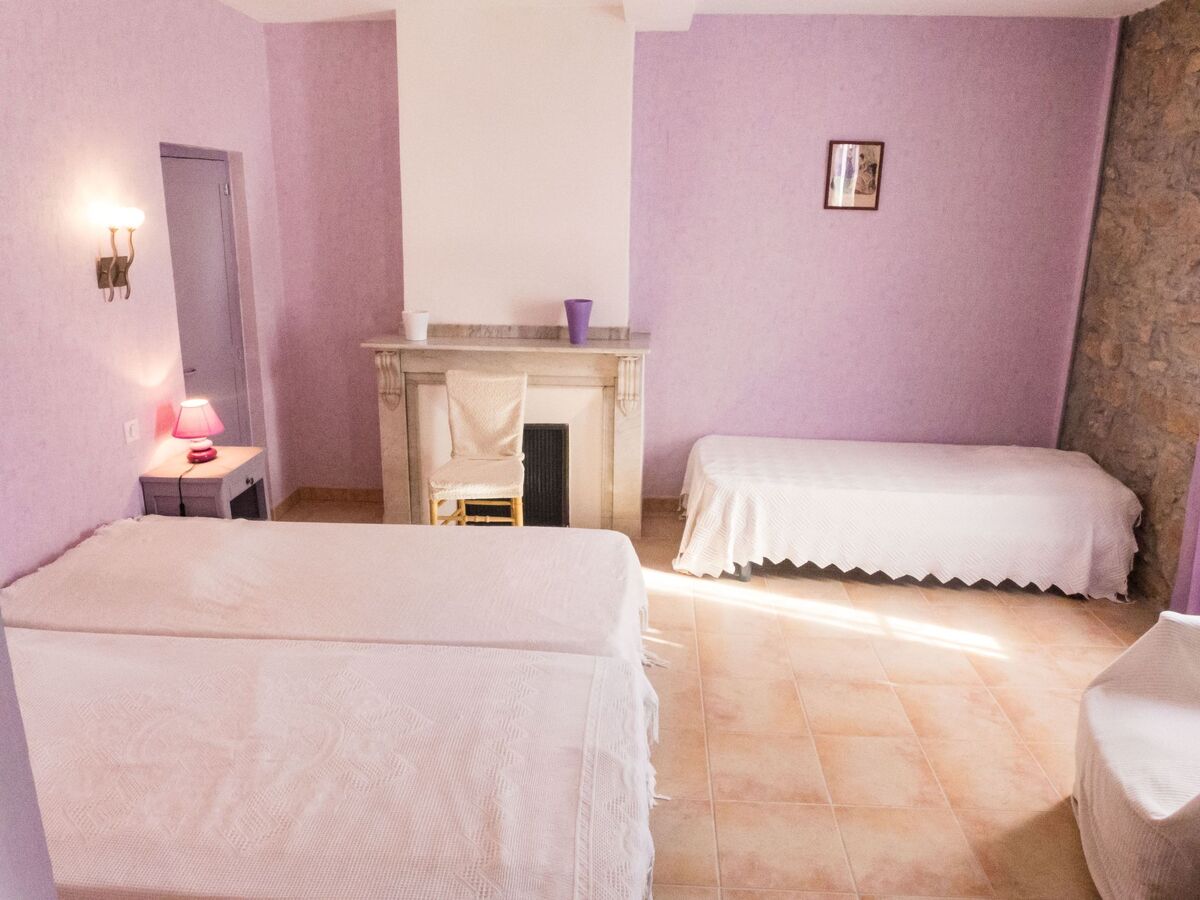 Au 1er étage : 1 grande chambre avec 1 lits doubles et 1 autre chambre spacieuse avec 3 lits simples ou 1 lit double et 1 lit simple.