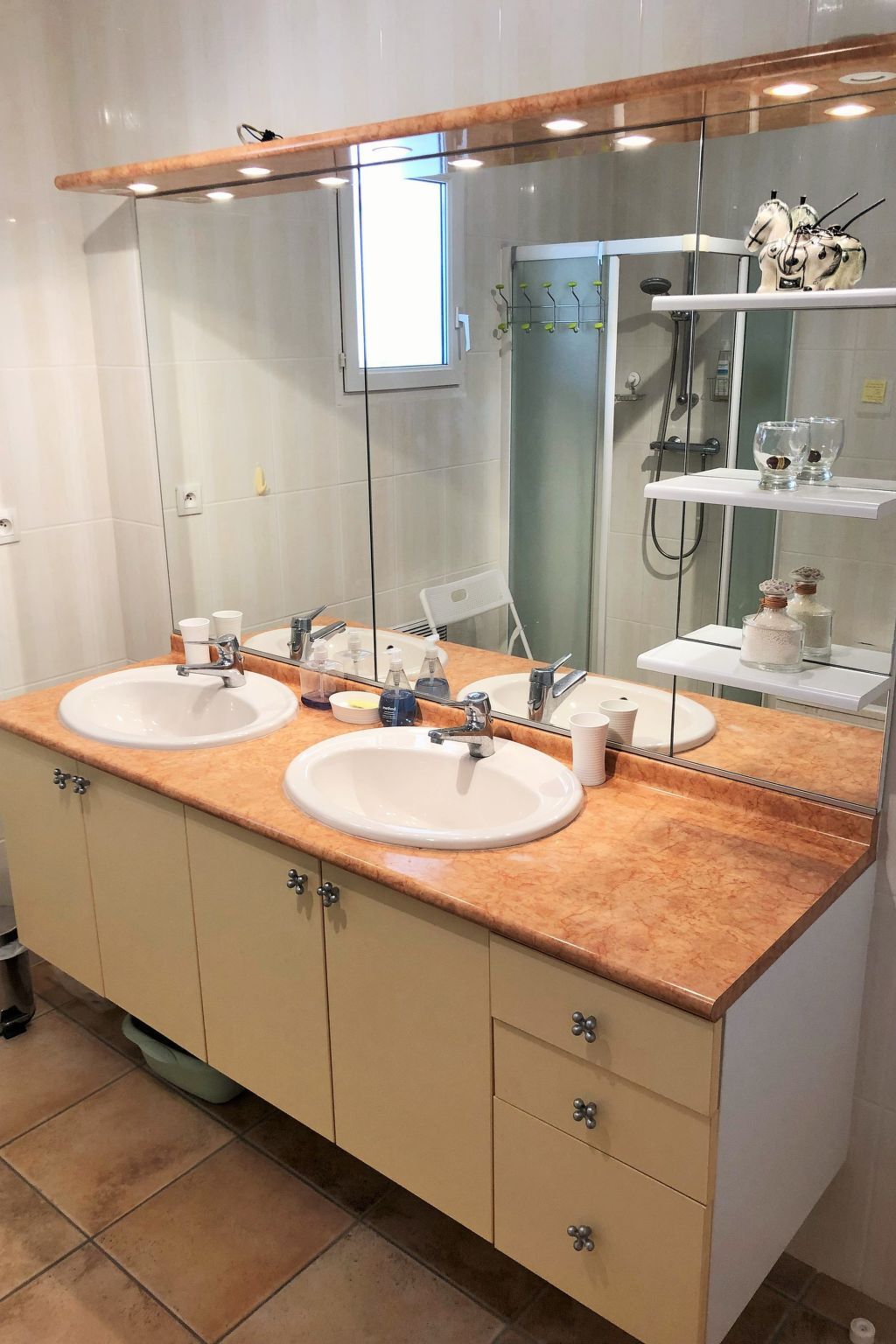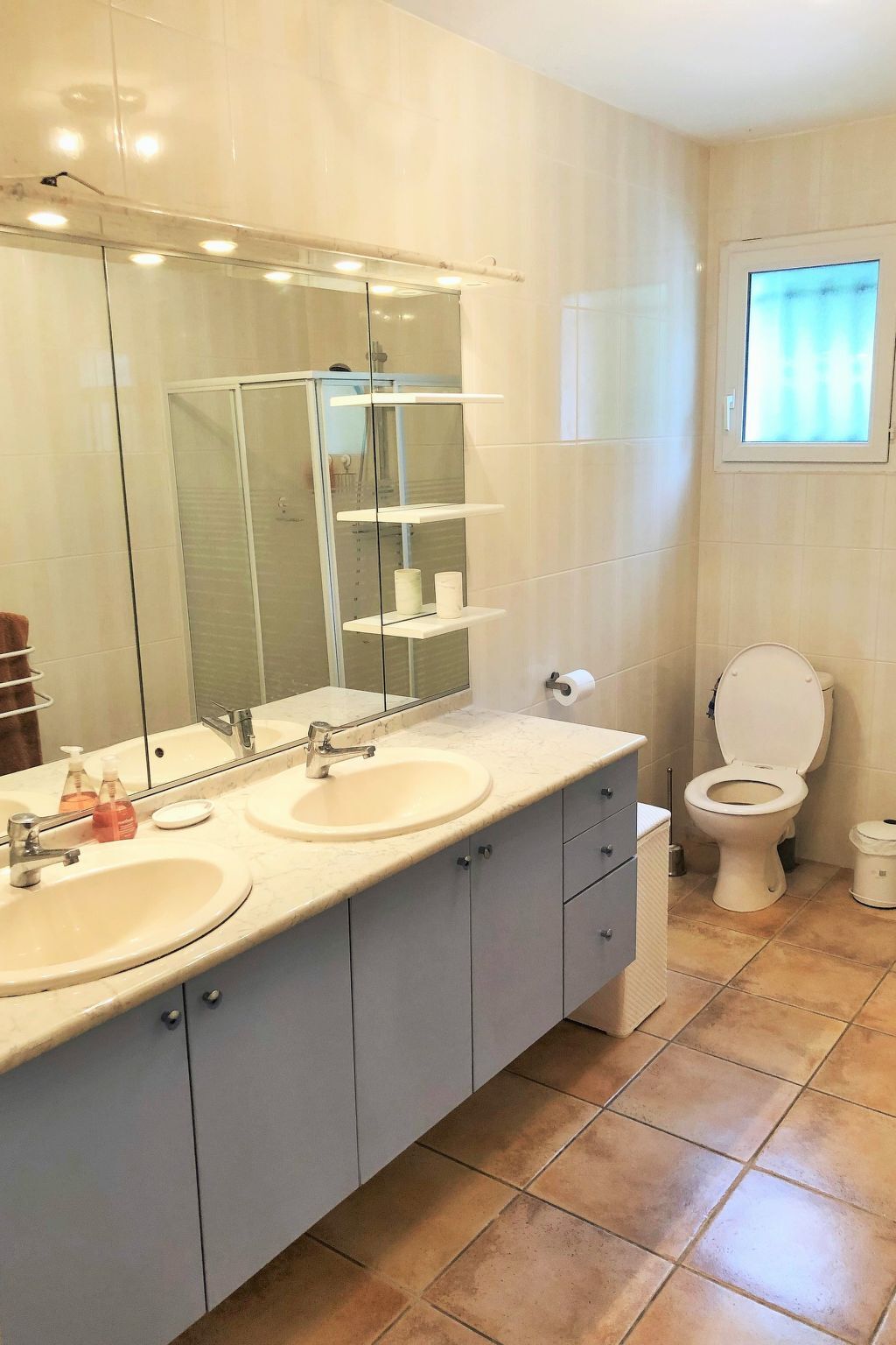 A l’intérieur trois chambres à la literie de grande qualité sont disposées de part et d’autre du salon : D’un côté, une suite parentale et sa salle d’eau privative, de l’autre, deux chambres, une salle de bain et des toilettes séparées.