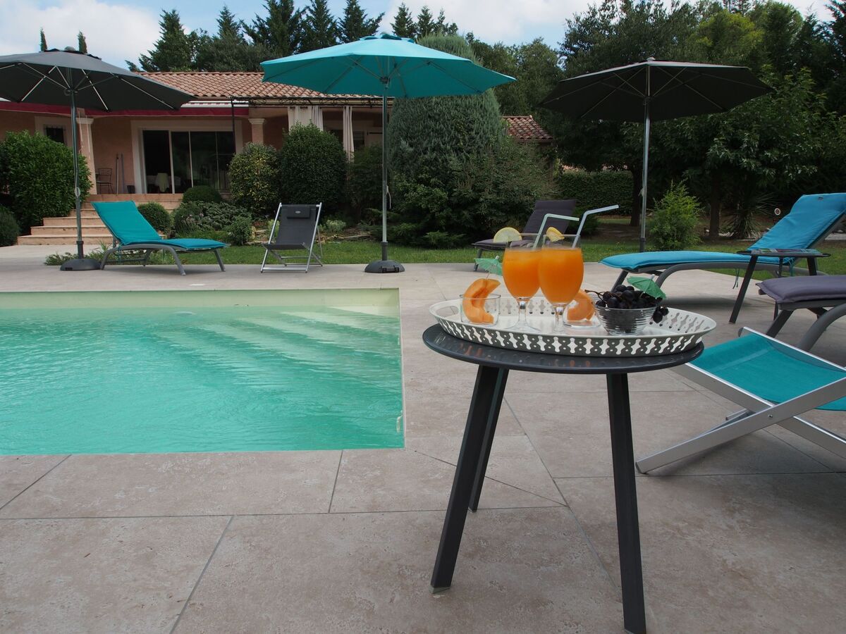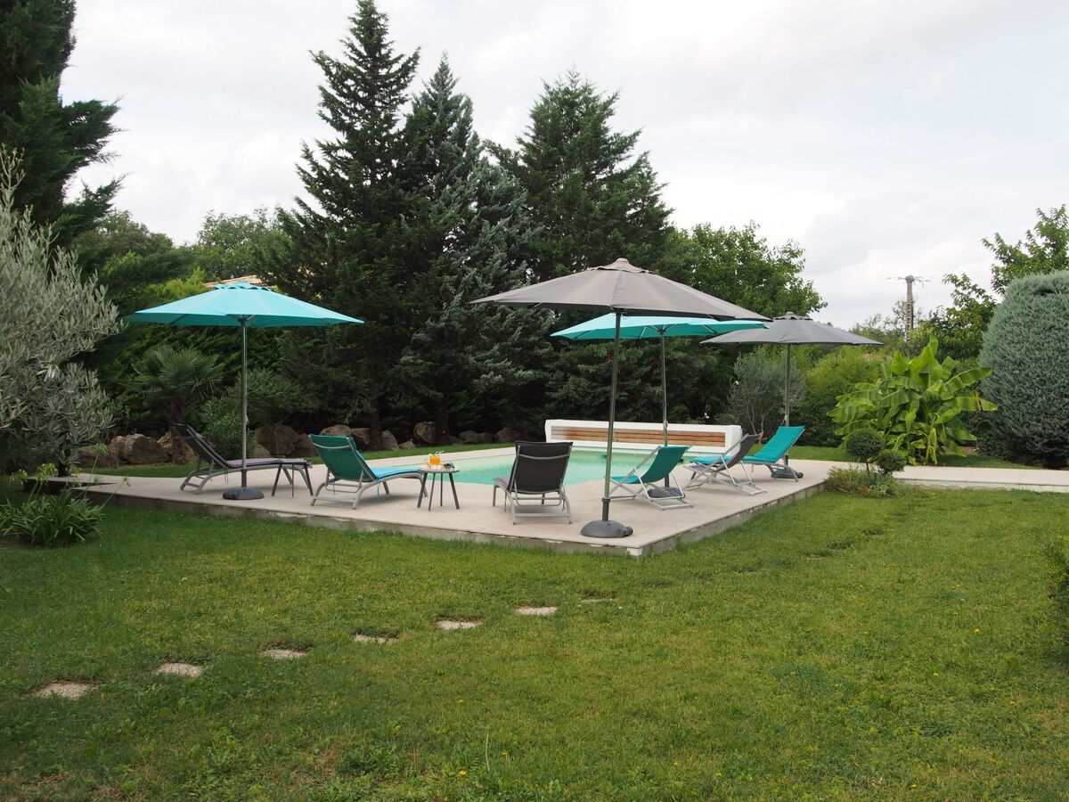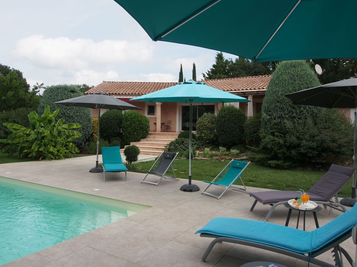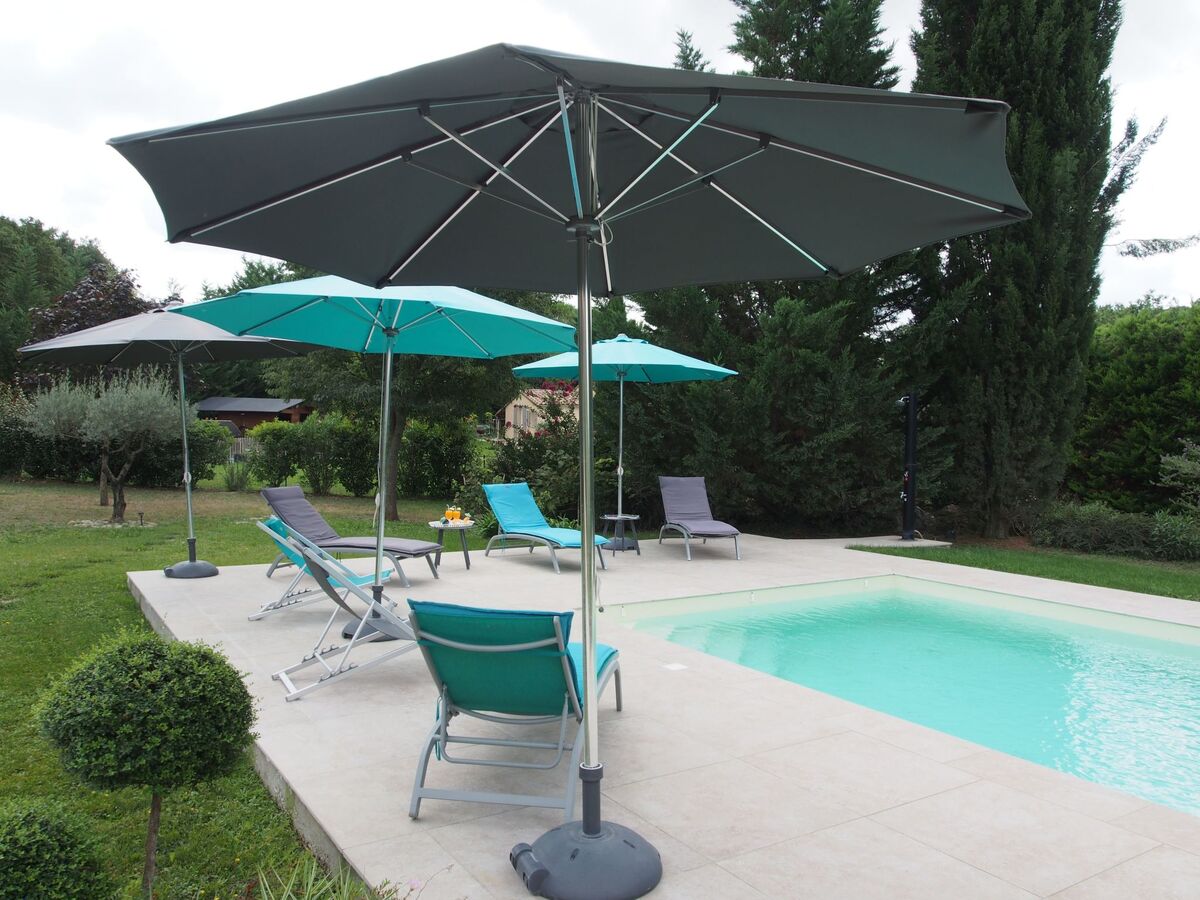 Autour de la piscine de 4 mètres sur 8, sécurisée par un volet électrique, les parasols et les transats invitent au farniente au soleil.