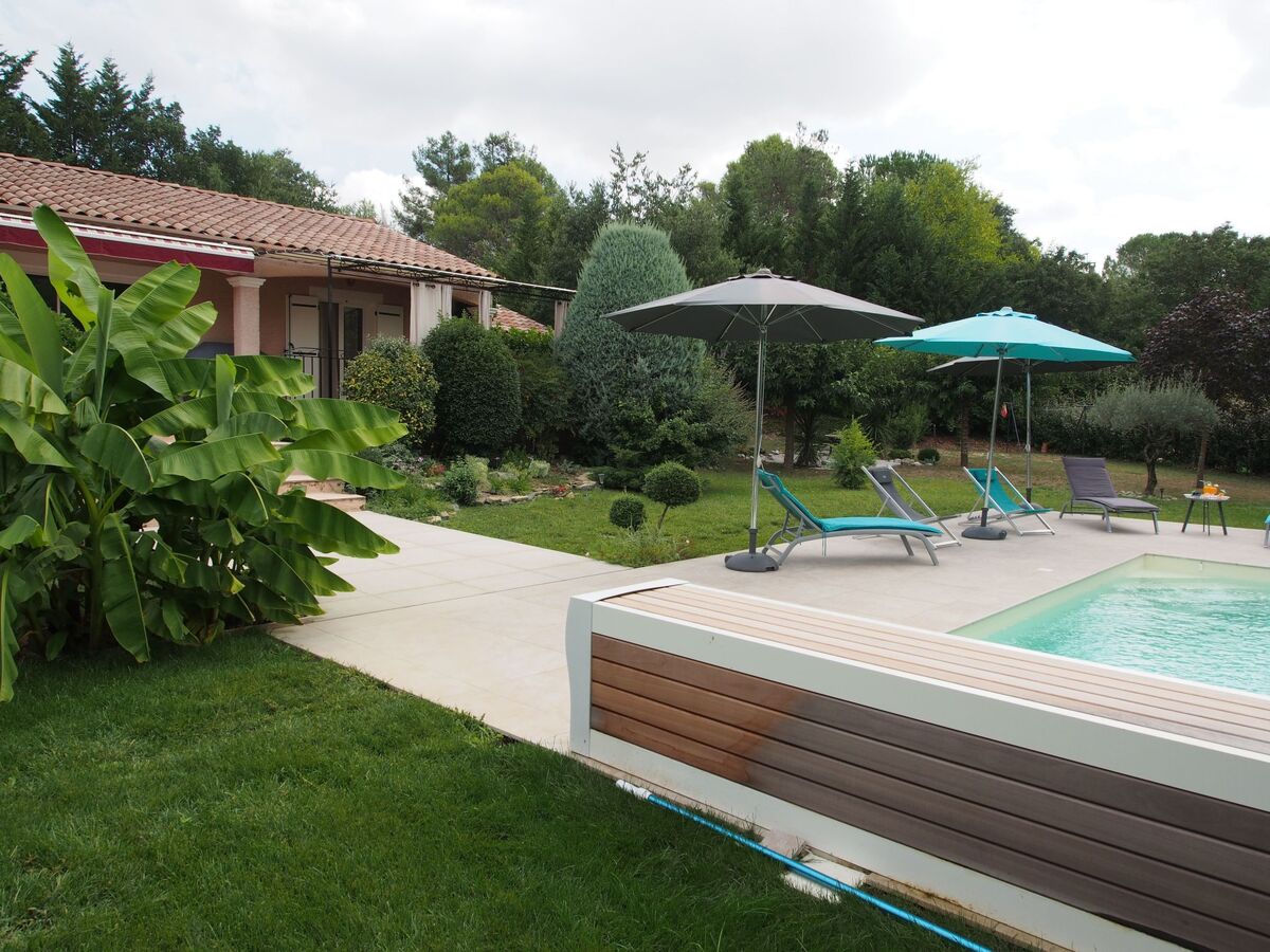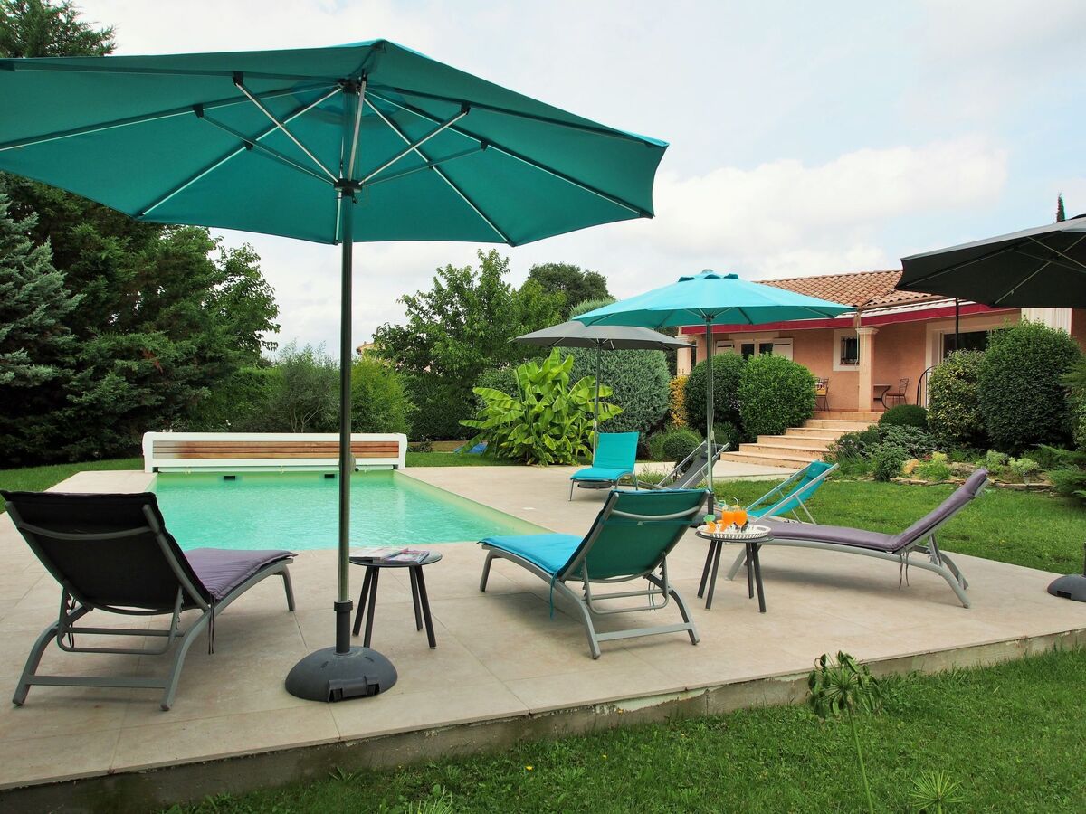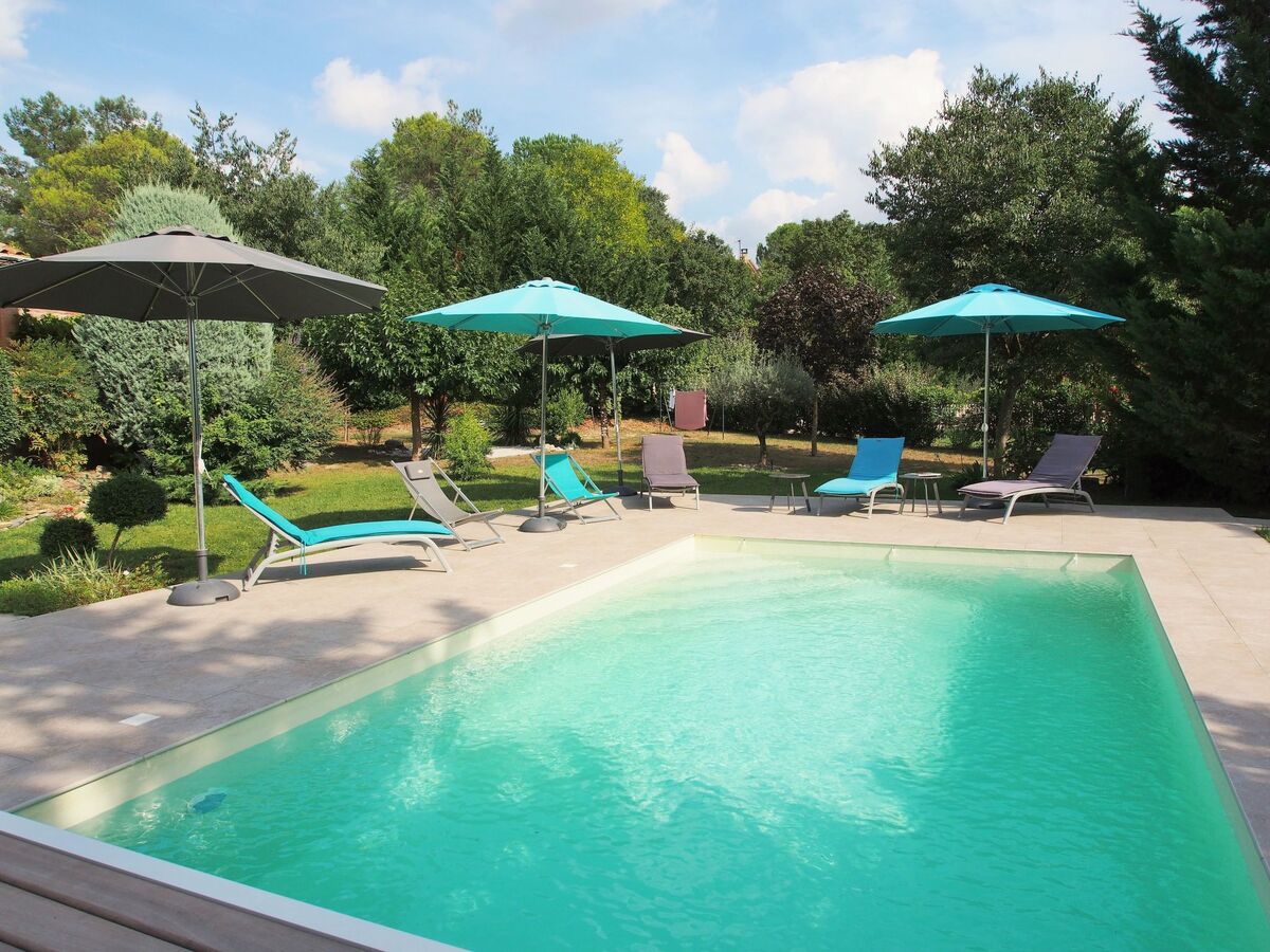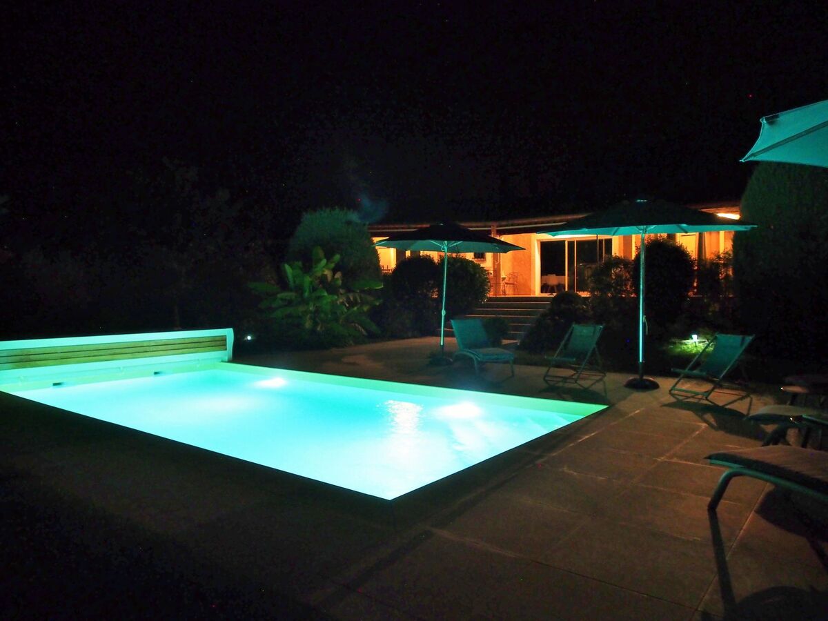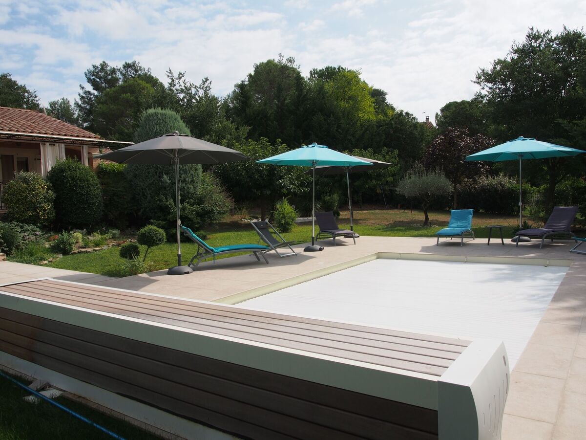 Autour de la piscine de 4 mètres sur 8, sécurisée par un volet électrique, les parasols et les transats invitent au farniente au soleil.