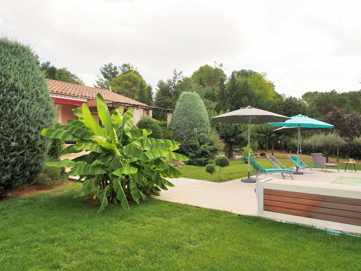 Le portail d’entrée s’ouvre sur le grand jardin arboré de près de 3000 m2 protégé par des haies de cyprès, havre de paix et de verdure planté d’oliviers, de mûriers, d’arbres fruitiers et de lauriers-roses.