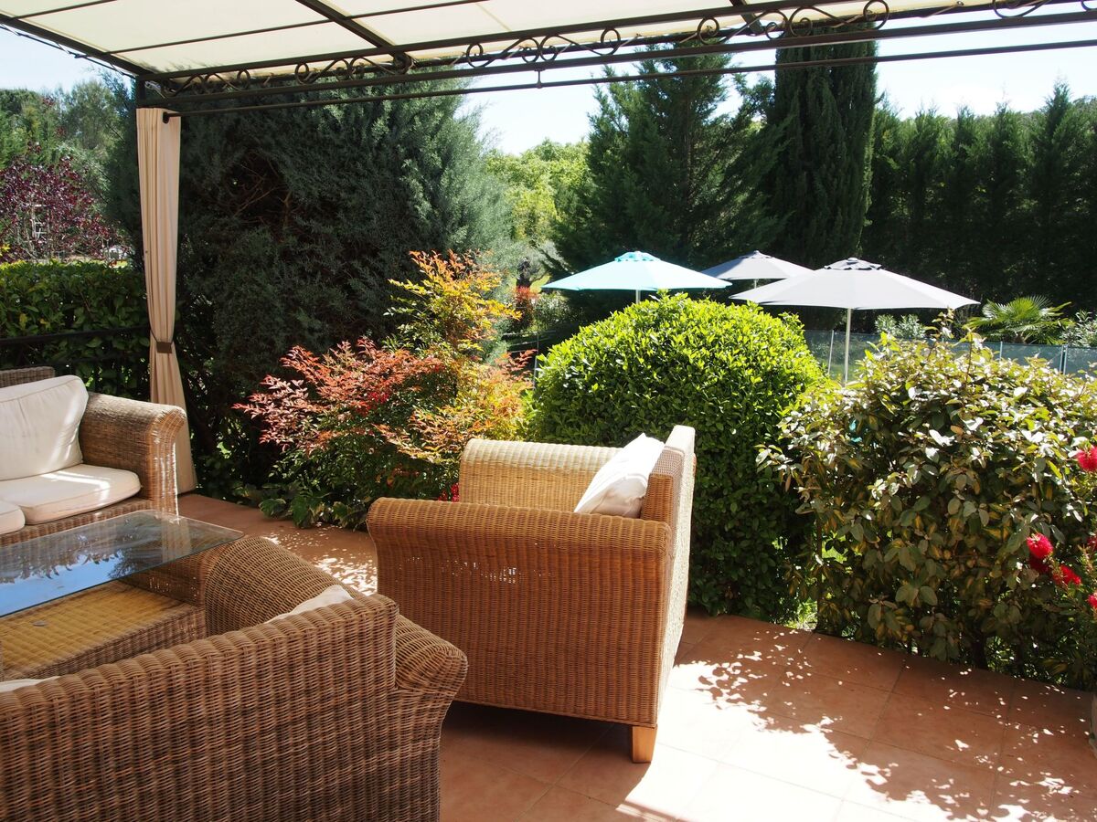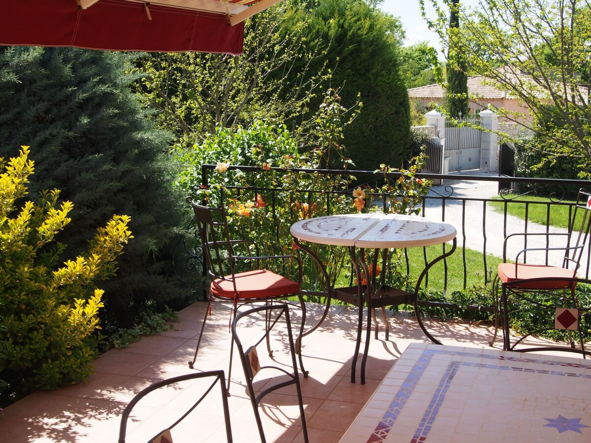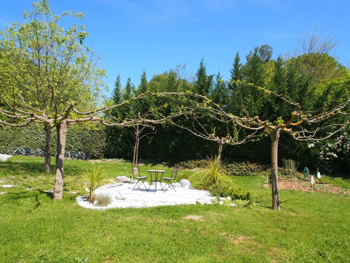 Vous trouverez un espace "zen", sa petite table d’extérieur et ses deux chaises à l’ombre de quatre mûriers-platanes pour offrir un coin de repos, de tranquillité et de lecture bienvenu.