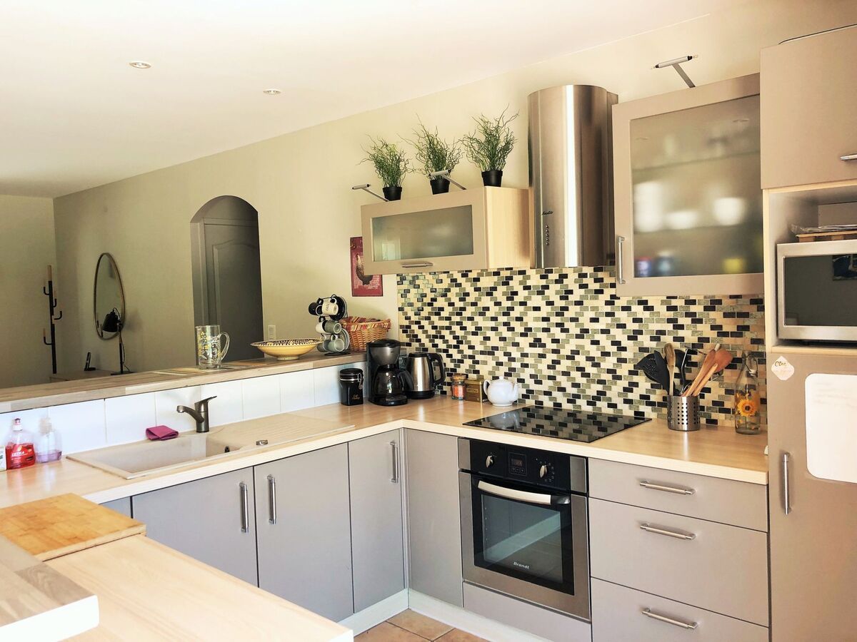 La cuisine ouverte dispose de tous les équipements et matériel nécessaires.