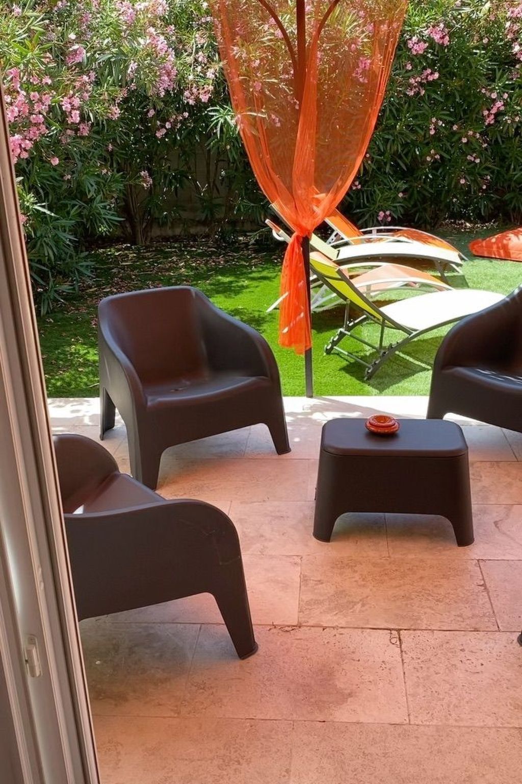 Grande terrasse ombragrée avec table repas, barbecue et salon de jardin (4 fauteuils) et 4 transats 2 fatboys Piscine chauffée (avril à octobre) et sécurisée avec bache à barre de 3*6 m et d'une profondeur de 1.20 mètre