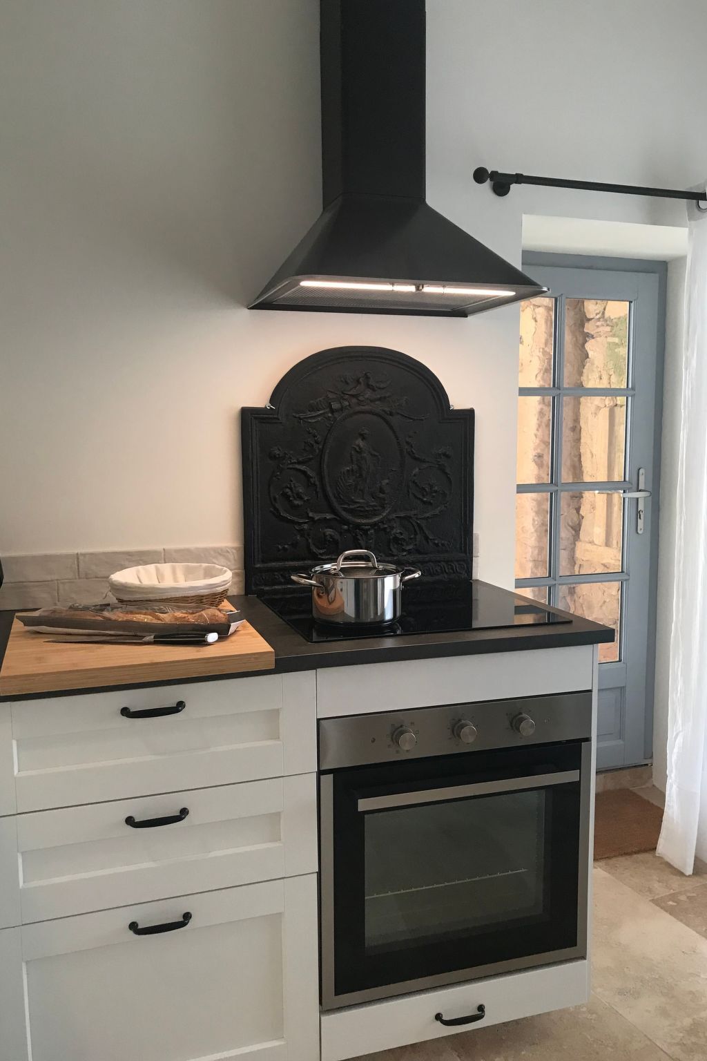 The gîte we created in 2021, it has a cosy living room with air conditioning, a kitchen equipped with an induction hob, oven, fridge/freezer, dishwasher, nespresso machine and of course plates/cutlery/glasses etc.