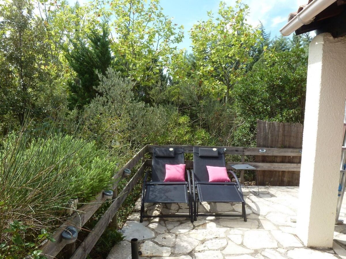 Lilliputienne has 3 terraces, a front terrace with 2 wooden deckchairs, a table with 4 chairs and a large parasol, a side terrace with a bench and a rear terrace where there is a table in the shade around the grape tree and 2 more deckchairs for sunbathing.
