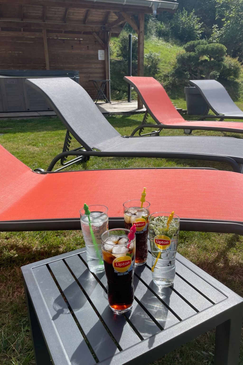 SPA pour 6 personnes, abrité1 grande terrasse couverte avec salon de jardin,ParasolsBarbecue (bois fournis)Bains de soleilTransatsTable et chaisesDouche extérieur solairepelouse