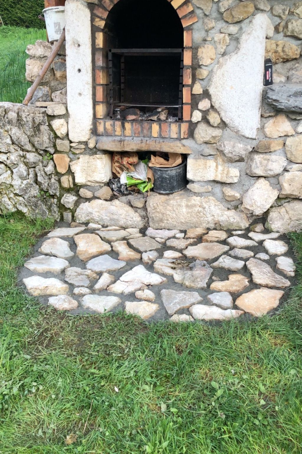 Un coin pour s’asseoir composé d’une grande table en bois avec deux bancs de 2,5 mètres ainsi qu’un parasol et un barbecue en briques sont également à disposition.