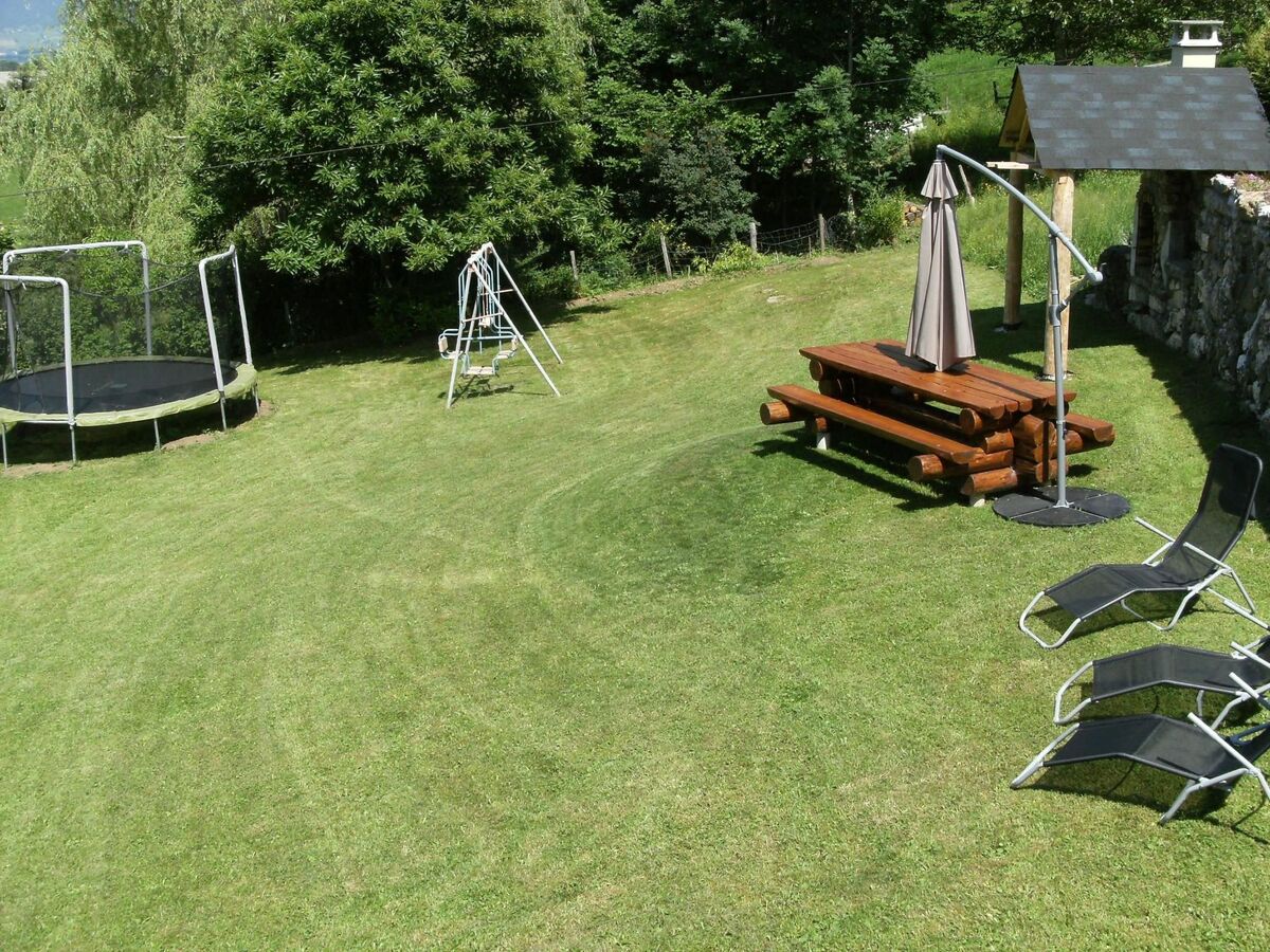 Pendant ce temps, les adultes peuvent se relaxer sur trois chaises longues et admirer le paysage montagneux.