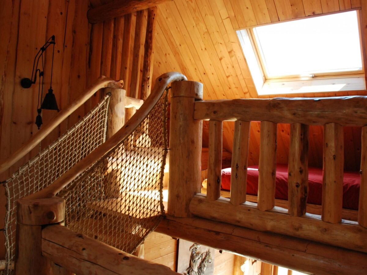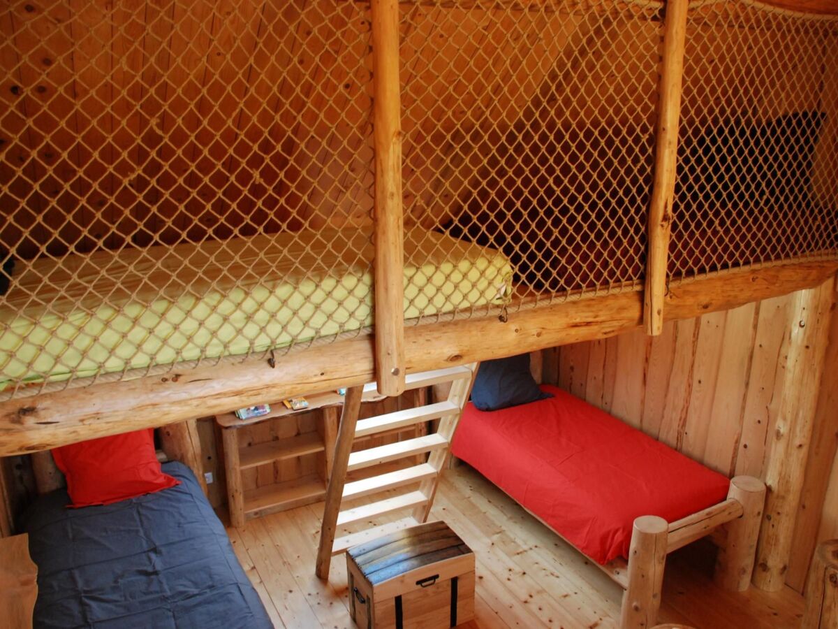 Quelques marches plus haut se trouve la première chambre à coucher qui dispose de deux lits une place (90 x 200 cm).