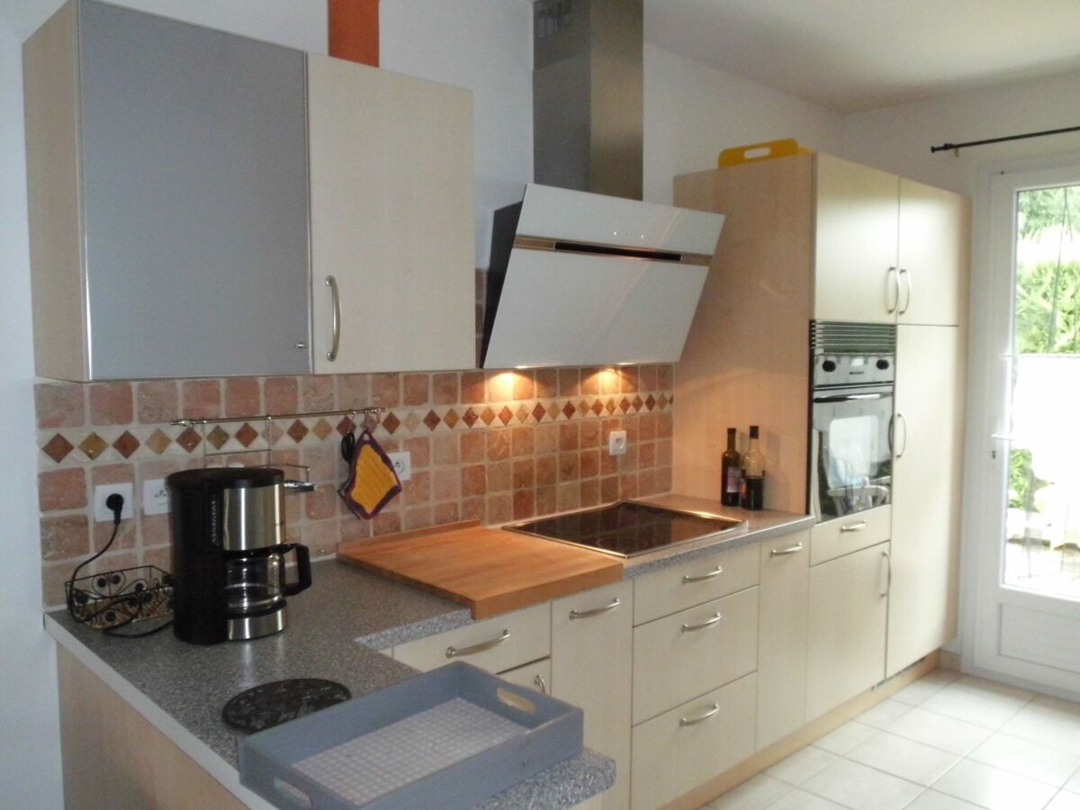 The comfortable fitted kitchen is fully equipped.