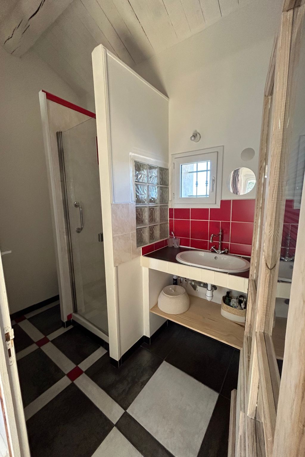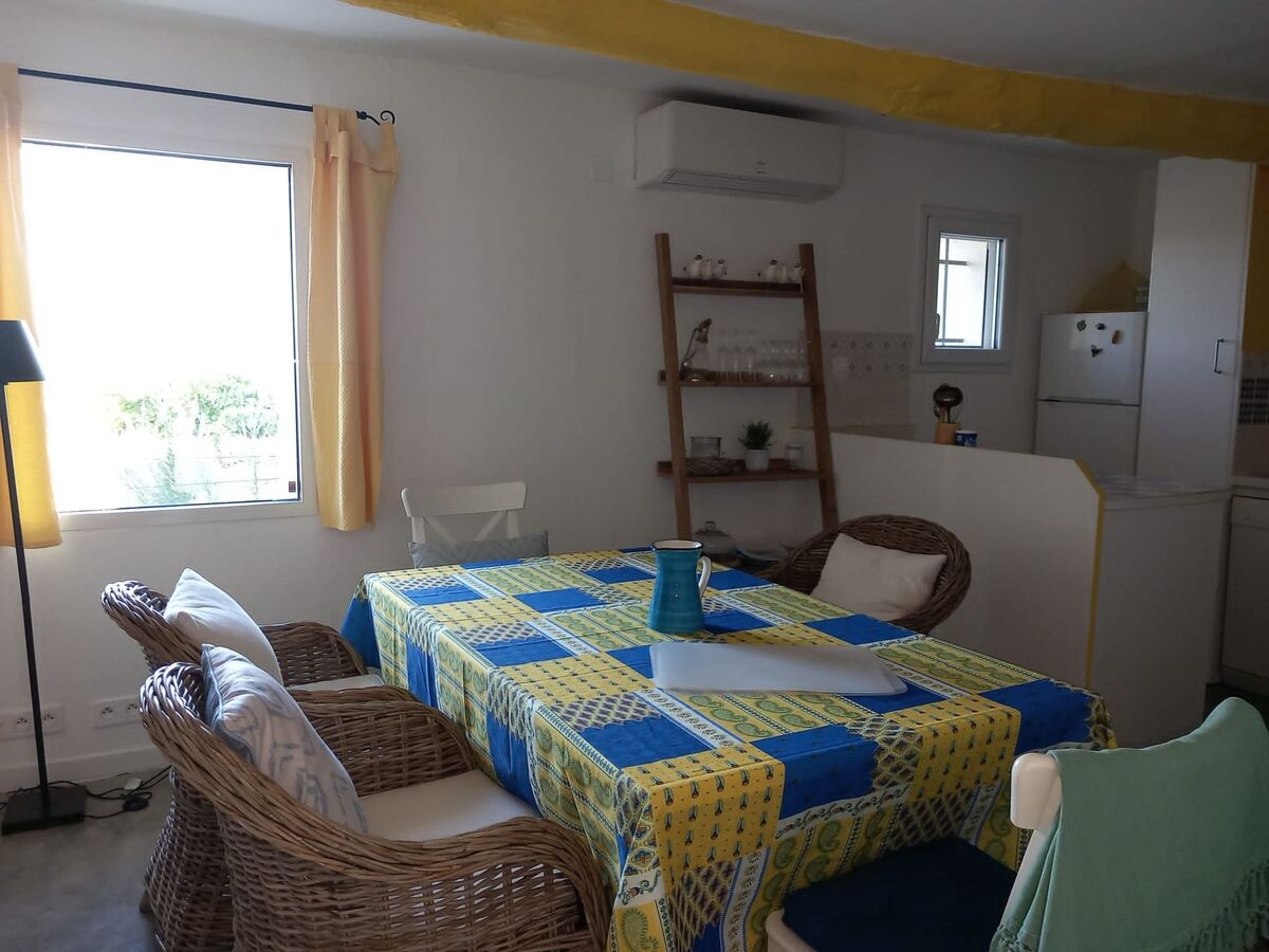 La maison dispose de 2 chambres (dont une avec climatisation) et de 2 salles de bains, d'une cuisine entièrement équipée et d'un salon climatisé.