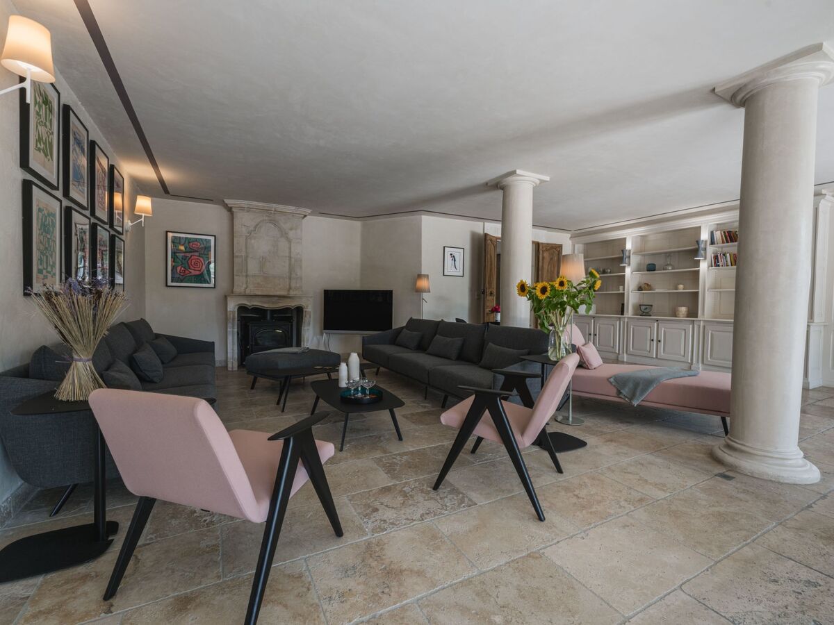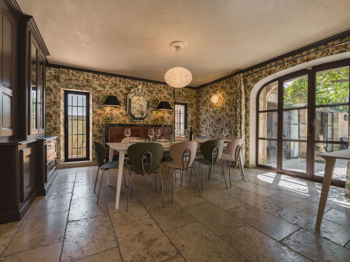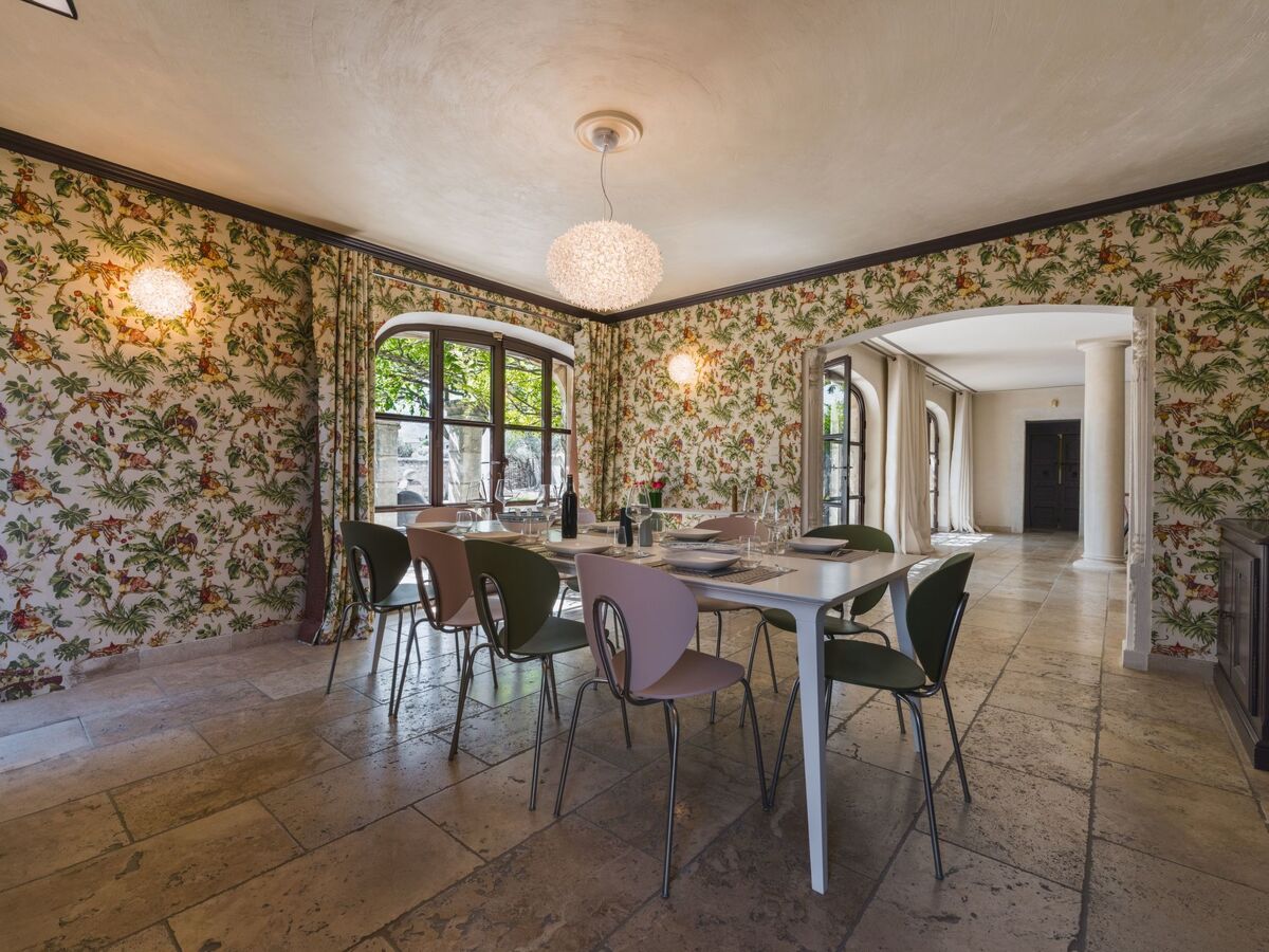 Accommodation at the villa is set over one floor, with spacious open-plan living areas and formal dining room opening onto a surrounding terrace overlooking the Alpilles.