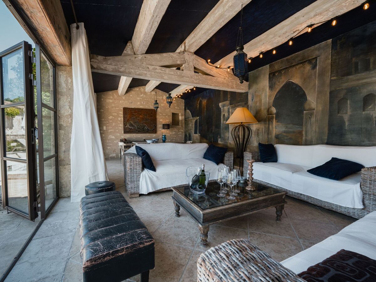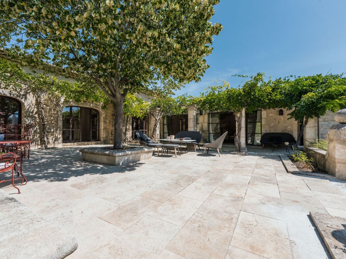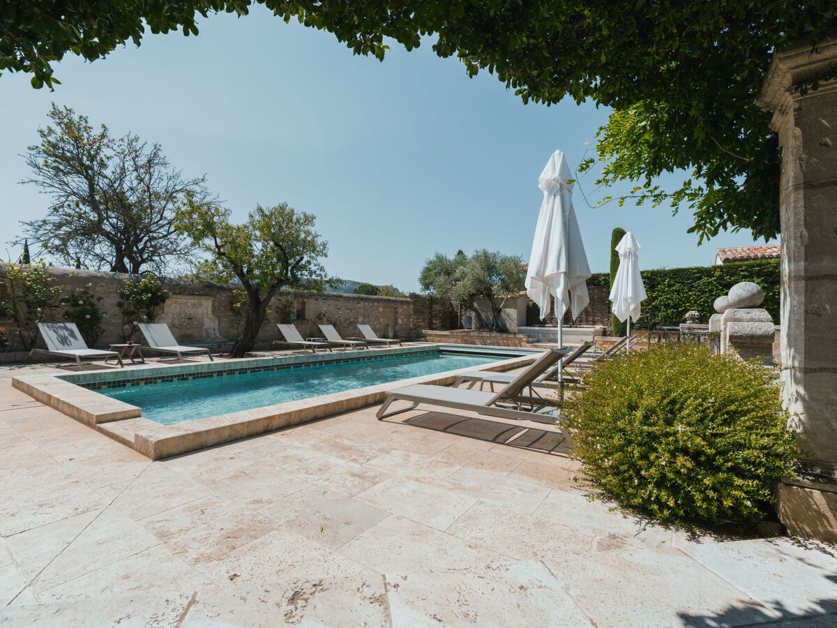 Accommodation at the villa is set over one floor, with spacious open-plan living areas and formal dining room opening onto a surrounding terrace overlooking the Alpilles.