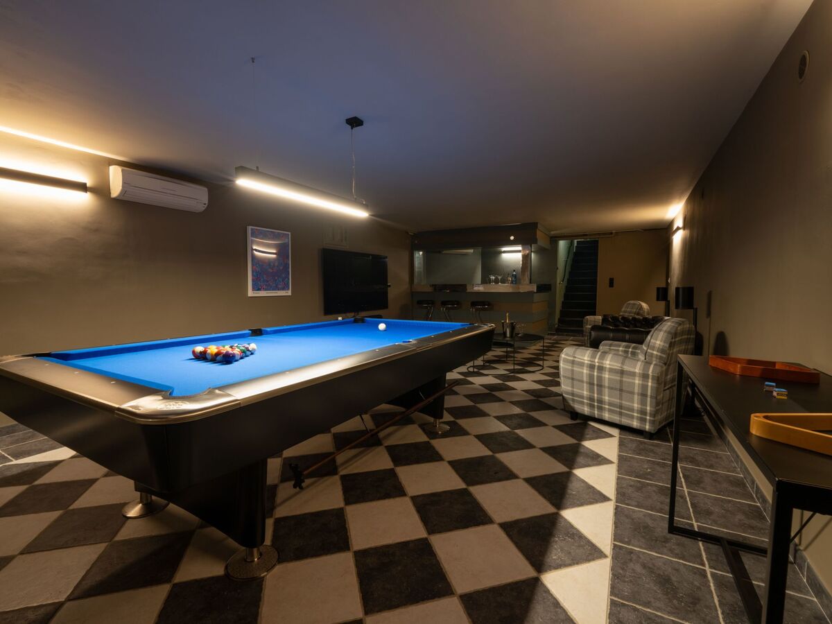 A fully equipped gym and yoga studio and a grown-up play room with ultra large TV Screen and Poll are provided.