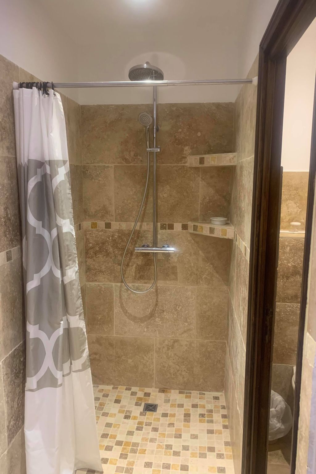 douche solaire, lits de soleil, barbecue + plancha, table extérieur avec ses chaises pour 12 personnes, possibilité de garer plusieurs voitures dans la propriété.