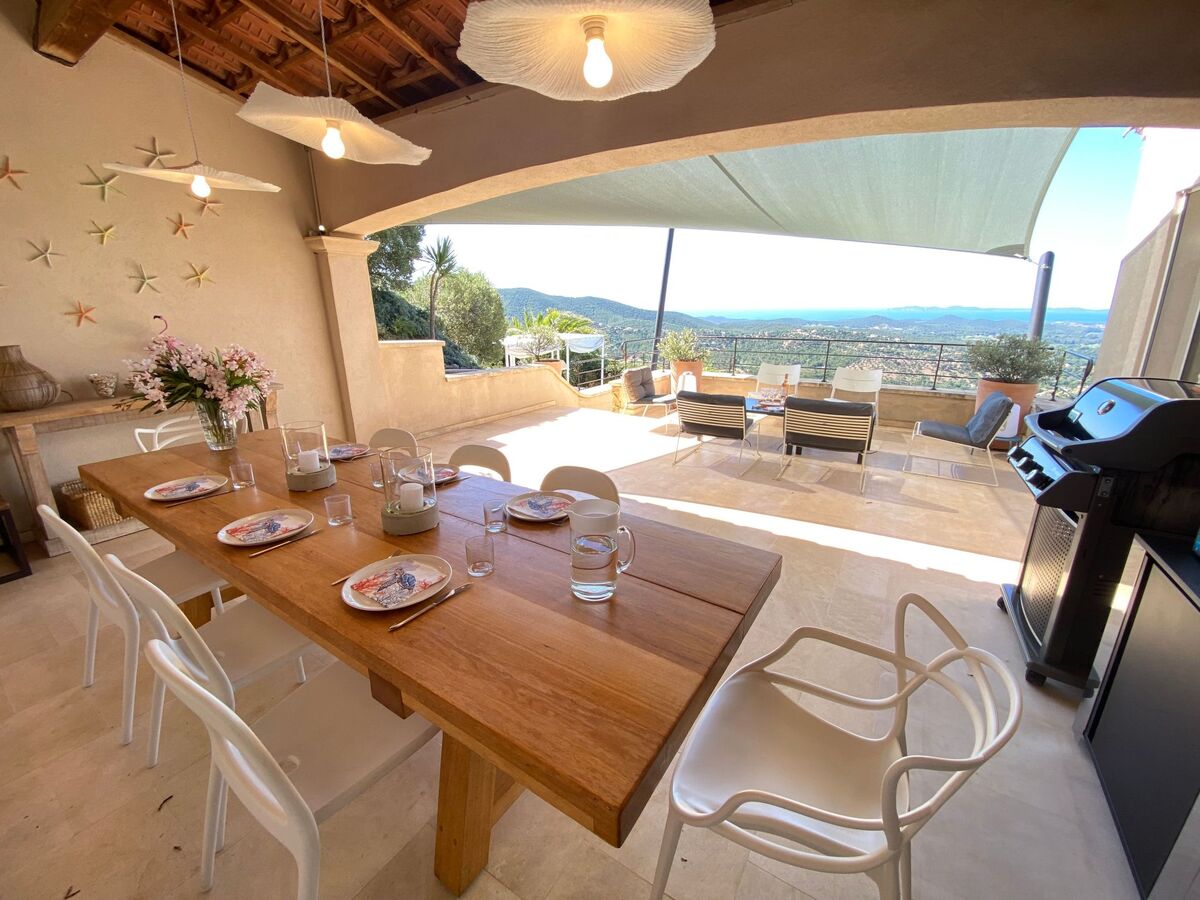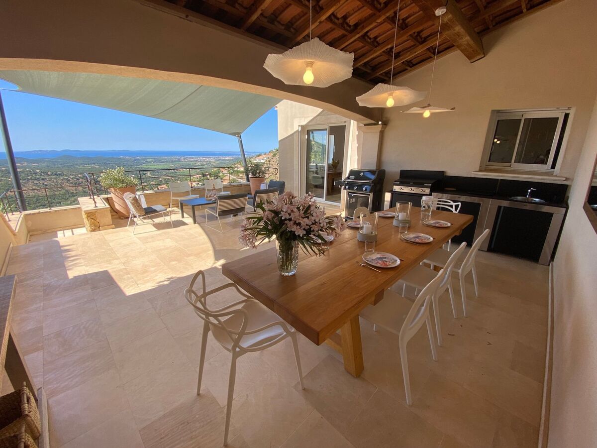 Cette villa de luxe vous offre une vue panoramique sur les Iles d’or : Port Cros, Porquerolles et l’ile du Levant.