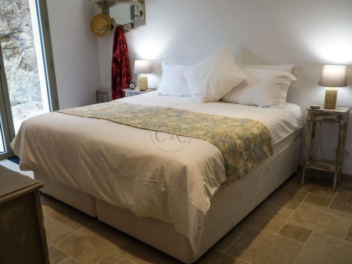 Au troisième niveau la chambre principale avec sa grande terrasse entre ciel et terre avec vue panoramique sur la mer, son dressing, sa salle de bain avec un Spa.
