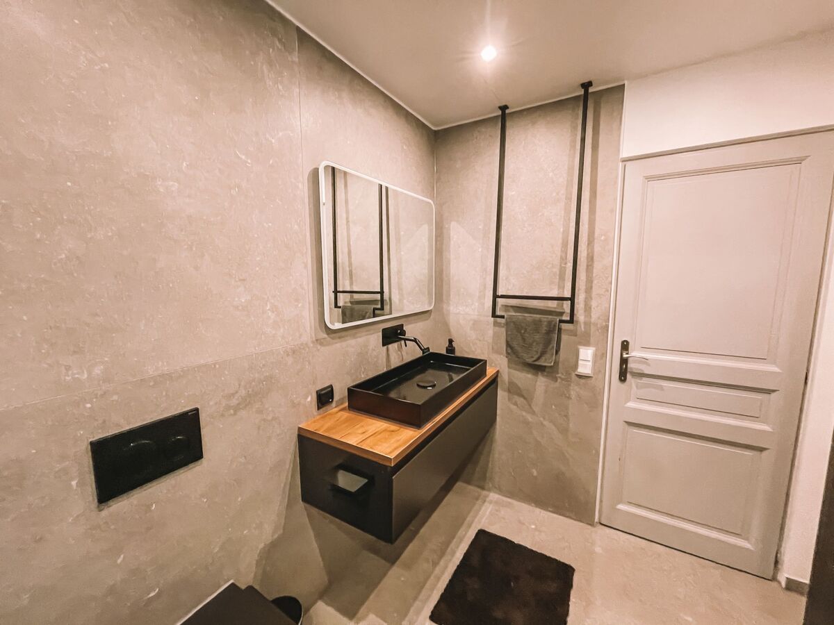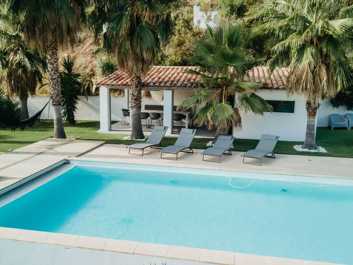 Der Außenbereich lädt mit seinem privaten Pool zu Erfrischung und Spaß an sonnigen Tagen ein.