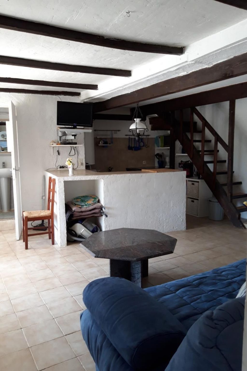 The children's bedroom is on the upper floor and can be reached via an open staircase and has two single beds (0.90 x 1.90 m).