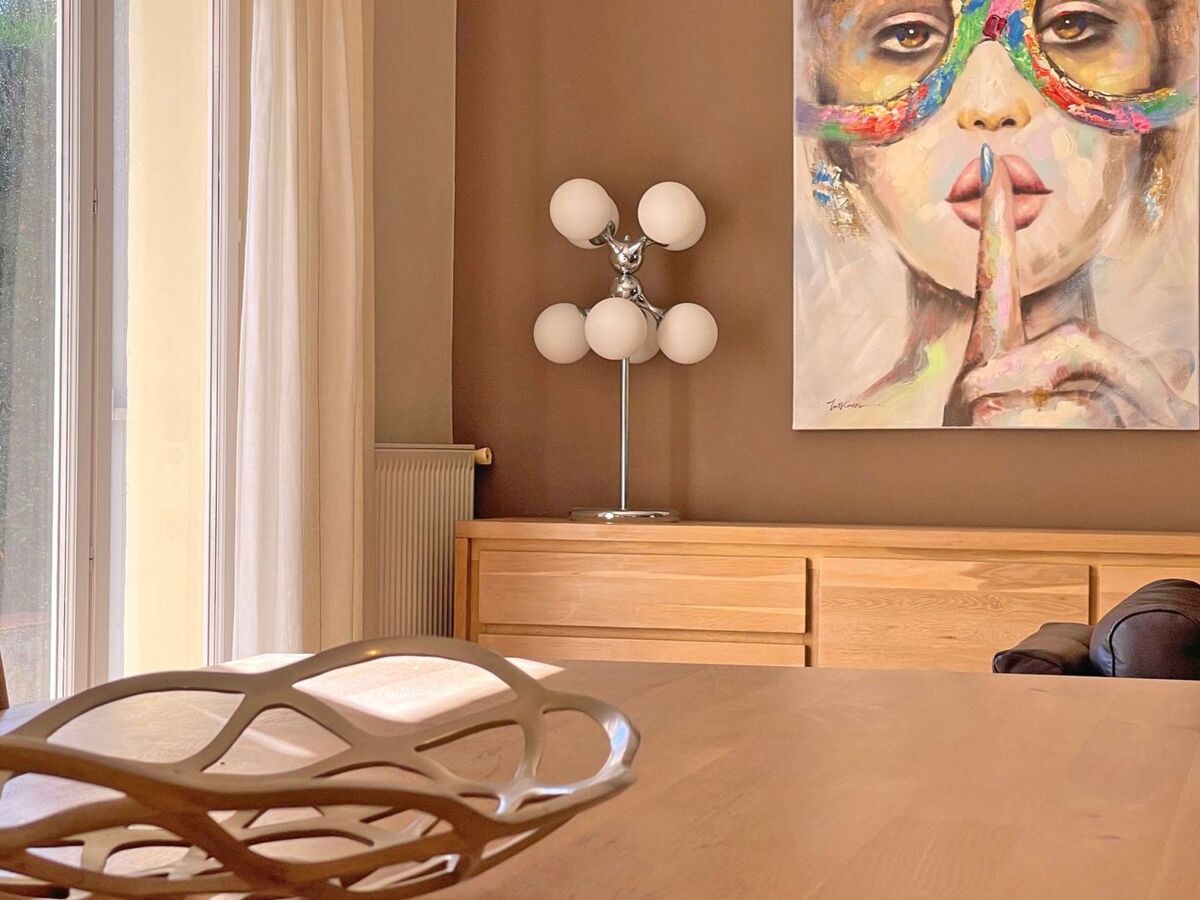 - Cuisine très bien équipée (réfrigérateur congélateur, plaques de cuisson induction, hotte, lave-vaisselle, four, micro-ondes, cafetière Nespresso, vaisselles diverses) table d'appoint avec chaises