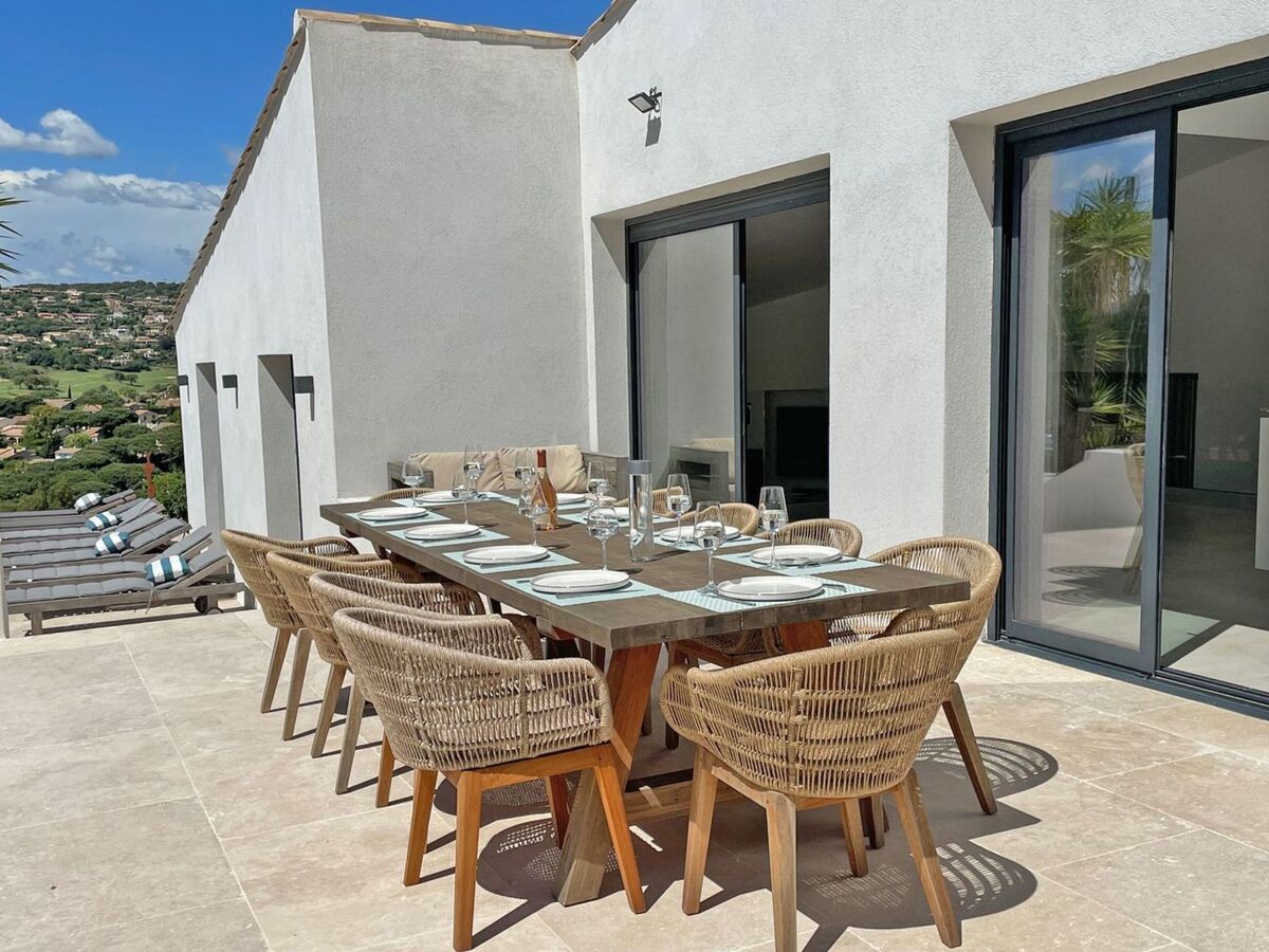 - Différents espaces : terrasse aménagée d'une belle table avec chaises, coin détente et un autre coin détente près de la piscine, transats et parasols