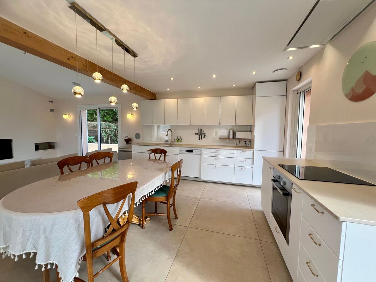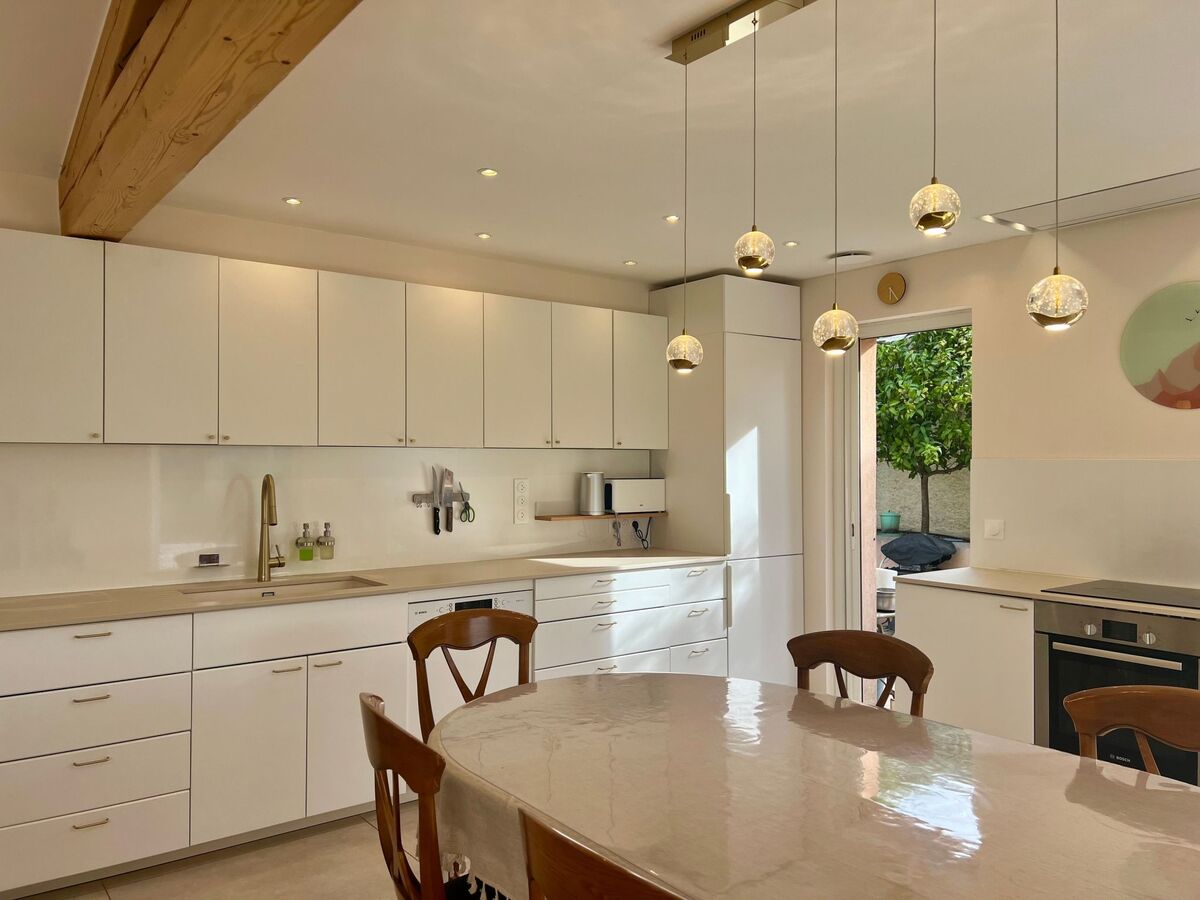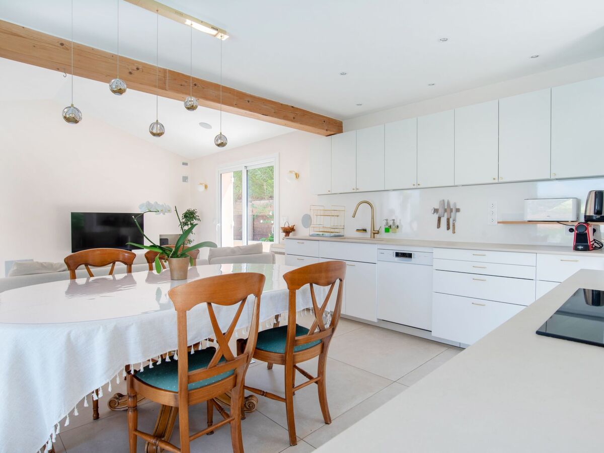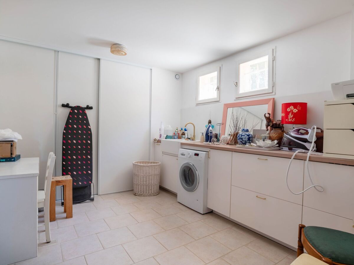 Il y a aussi trois WC, un salon avec une télévision écran plat Led 46 pouces, une salle à manger, une cuisine indépendante équipée de cuisinière induction, four, four à micro-ondes, cafetière Senseo en capsule, lave-vaisselle; une buanderie avec la lave-linge, connexion internet.