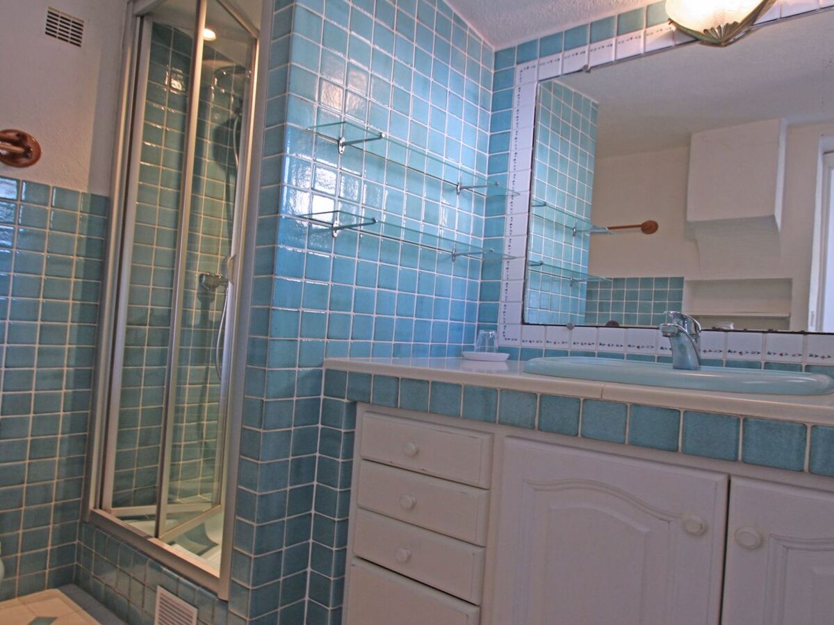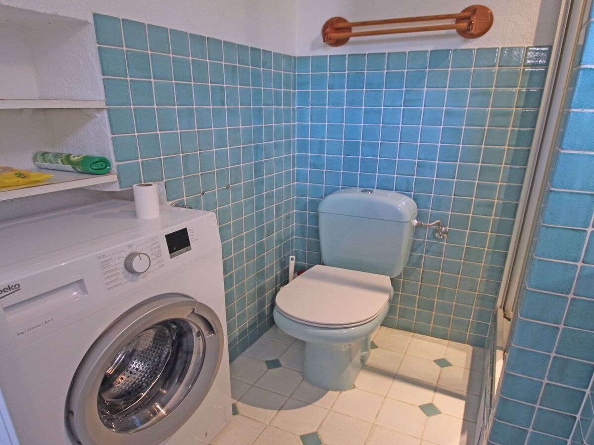 - Salle d'eau avec cabine de douche, meuble vasque, WC et lave-linge