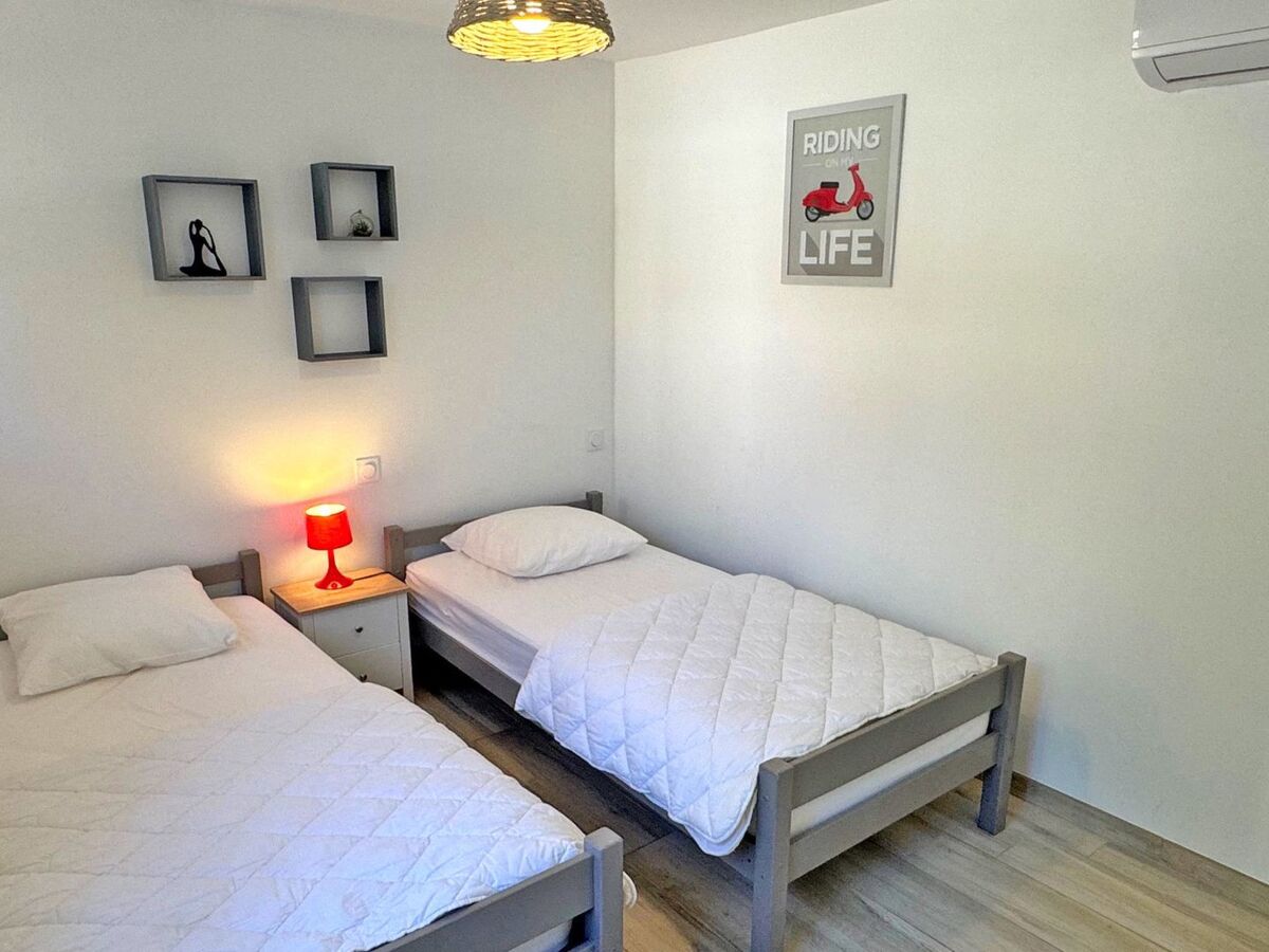 - Chambre 2 climatisée : 2 lits simples (90cm) avec placards