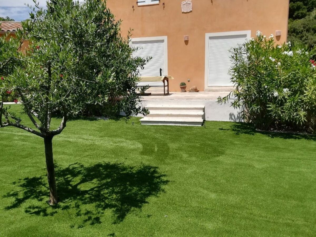 Elle n'est pas clôturée mais entourée d'arbres (chênes et oliviers).