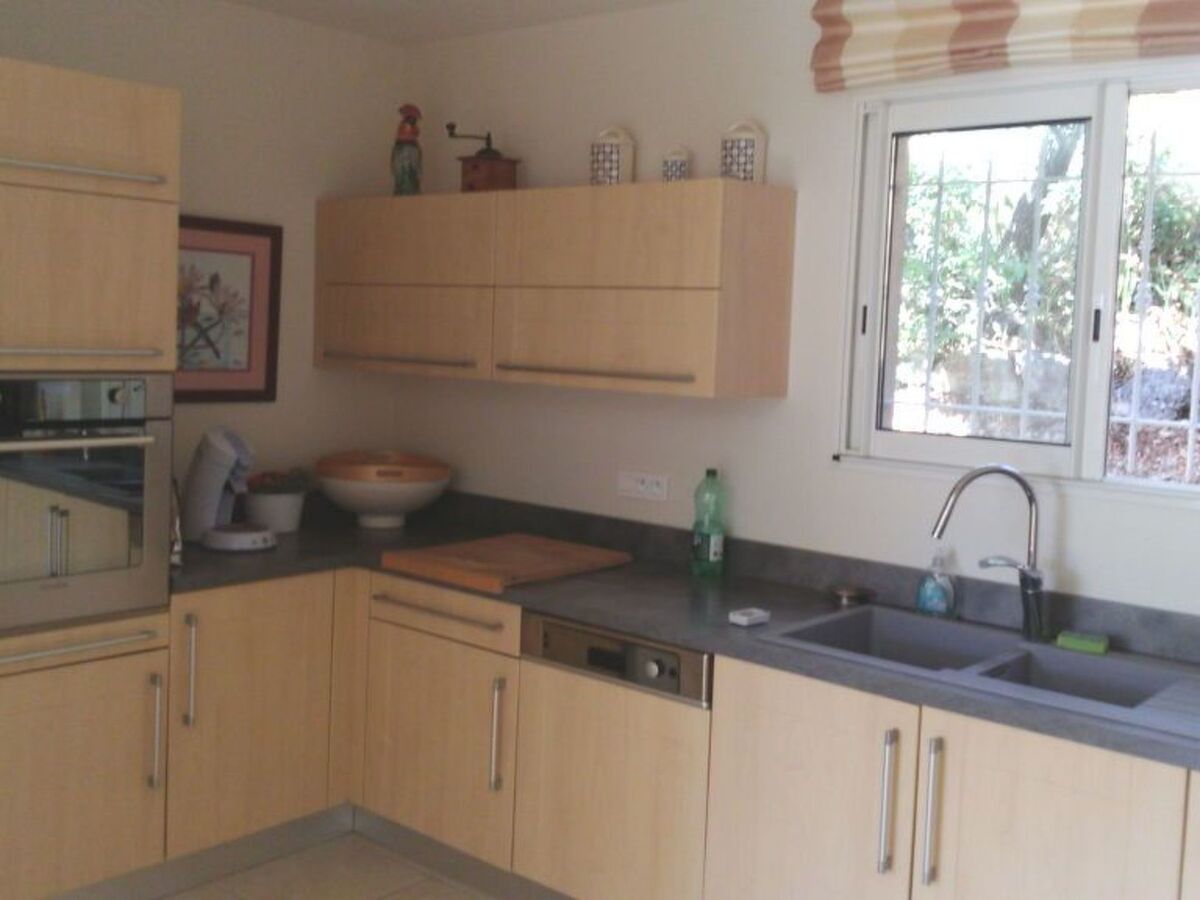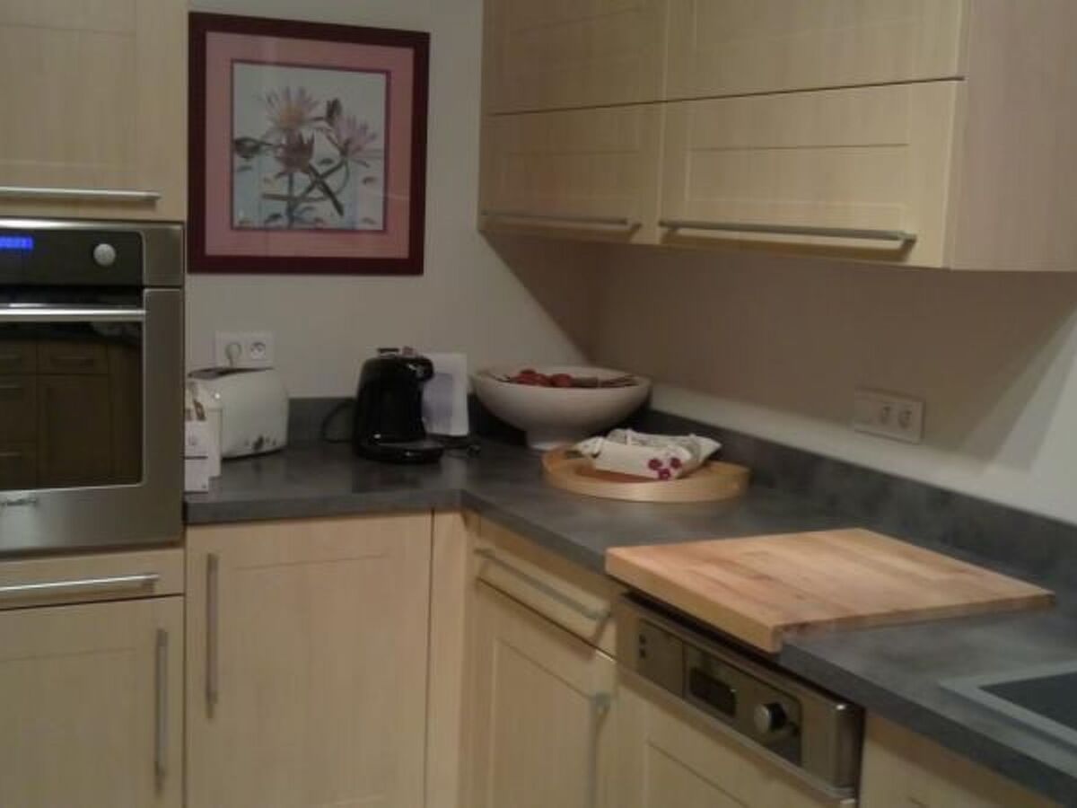 La cuisine est équipée d’un four, micro ondes, plaques à induction (4 feux) réfrigérateur et congélateur, lave vaisselle, cafetière senseo, grille pain.