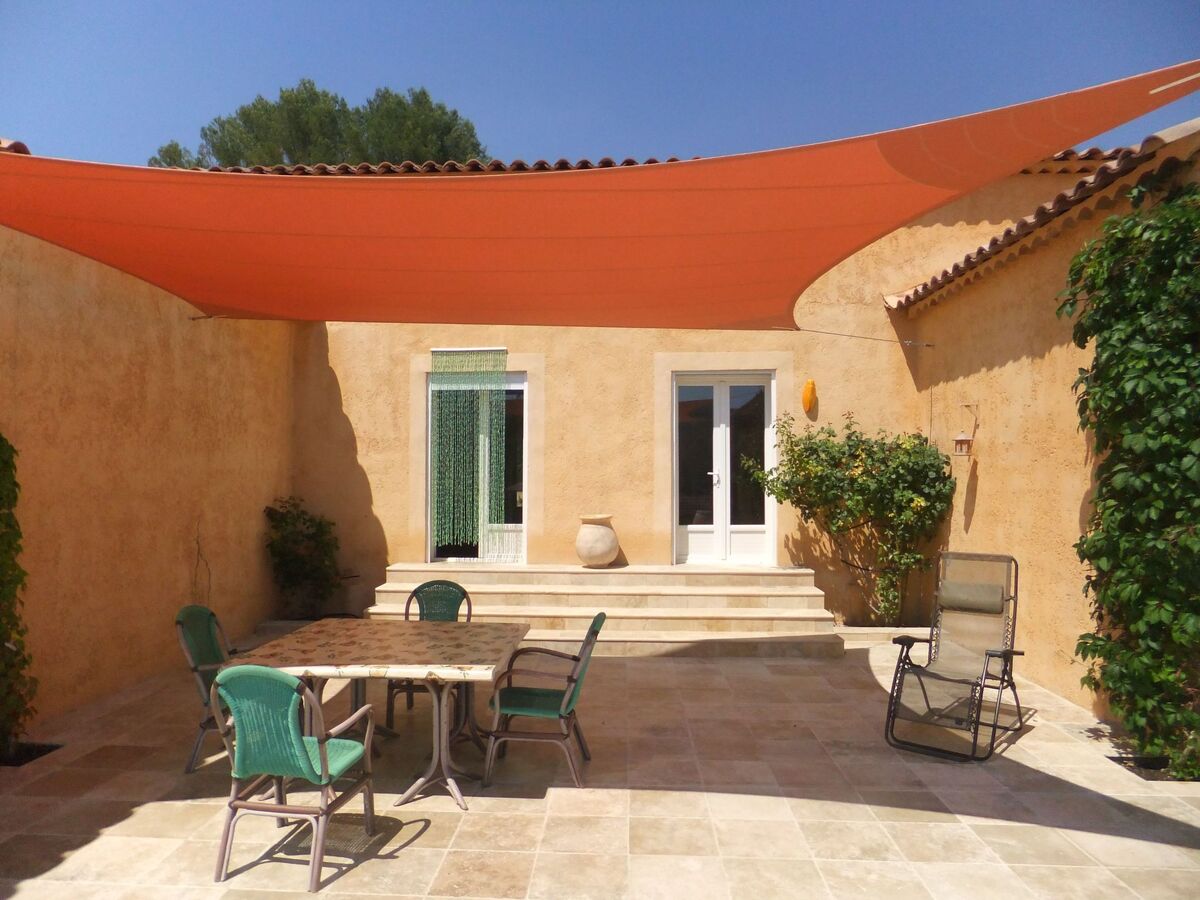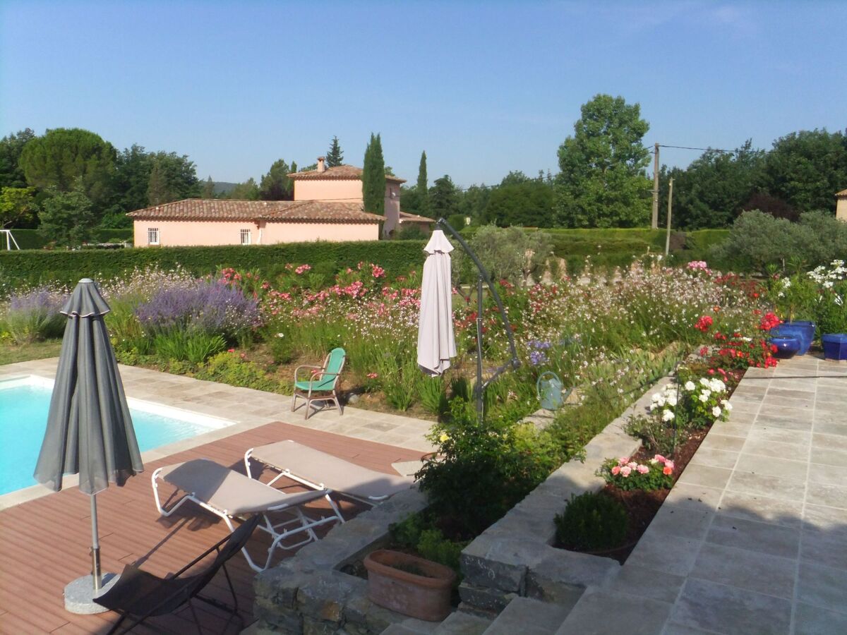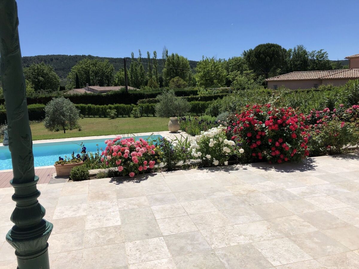 Vastes terrasses (environ 200 m2, dont 70 autour de la piscine, 120 proches du séjour et 20 couverts pour les repas), BBQ, meubles de jardin, grand terrain privatif et clôturé (4000 m2).