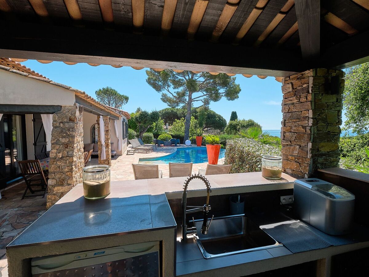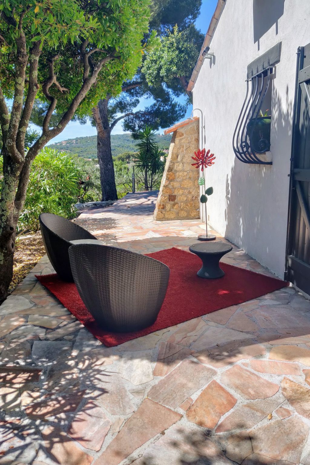 Charmant mas provençal offrant un lieu de villégiature protégé dans un écrin de verdure de 2.000 m² aux essences méditerranéennes, dans le Massif des Maures, sur la Riviera.La villa se situe à 400 mètres de la mer, dans un environnement très calme, et sans vis-à-vis.