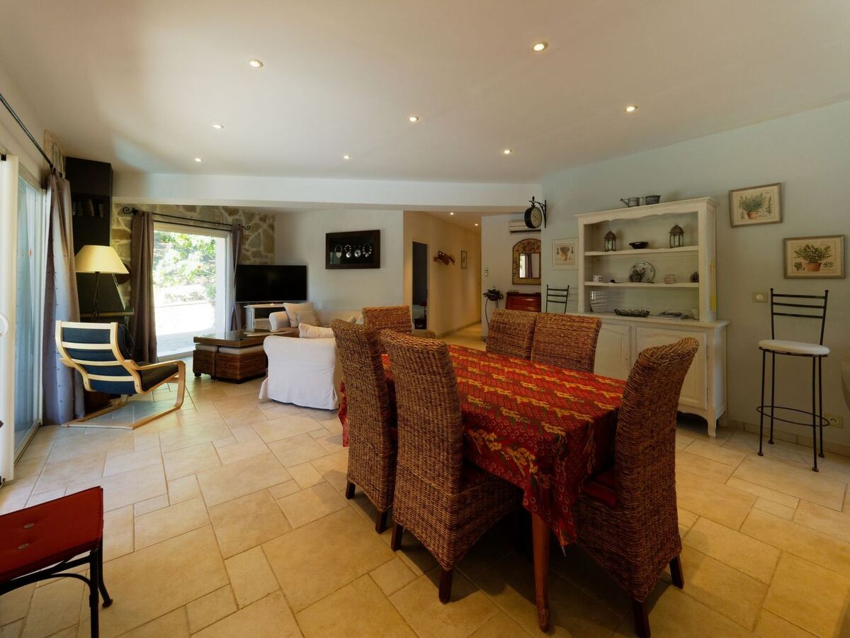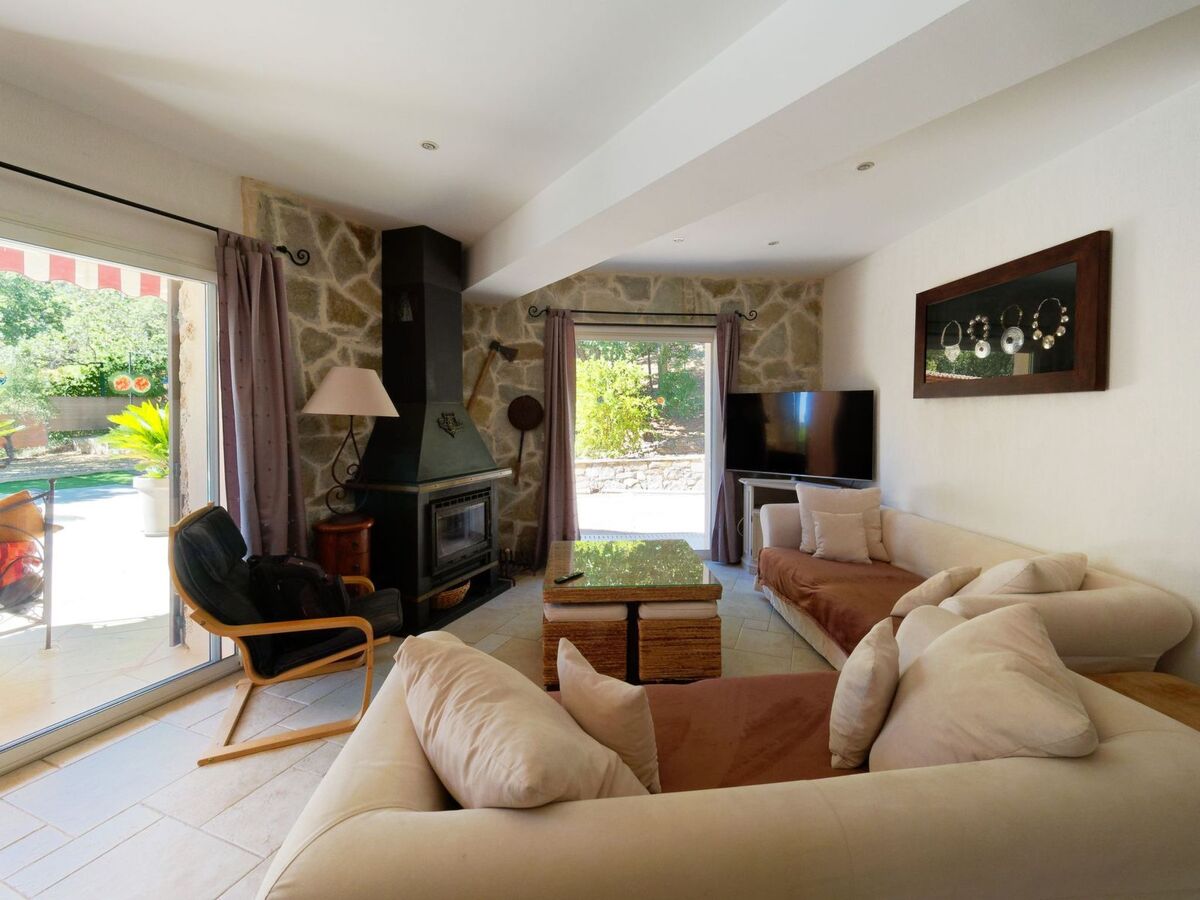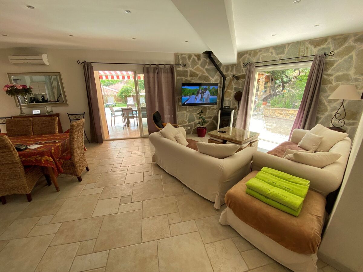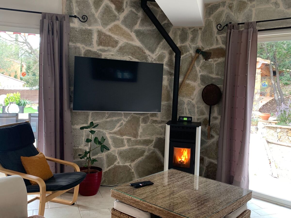 villa avec belle vue sur le village, au calme, au coeur des vignerons Superbe Villa de charme avec 4 chambres pour 8 pers que pour vous avec piscine chauffé d'avril à octobre située dans une résidence de 8 villas privées, au calme avec vue sur la Taradel à 300 m du village de Taradeau Elle dispose d'un agréable séjour cuisine américaine tout équipée, salle à manger, un salon avec canapé, TV, 1 chambre lit 160 cm situe au Rez de chaussée, 1 salle d'eau à l'italienne avec toilette et 3 chambres à l'étage : 1 suite parentale lit 160 cm avec TV avec douche à l'italienne et toilette, 1 chambre avec 2 petits lits 90 x 200 cm, 1 chambre 1 grand lit 140 cm, 1 salle d'eau à l'italienne avec toilette, bureau avec canapé lit, bibliothèque, jeux de société, wifi fibre optique, climatisation réversible dans toutes les pièces, poêle à granules au rez de chaussée.
