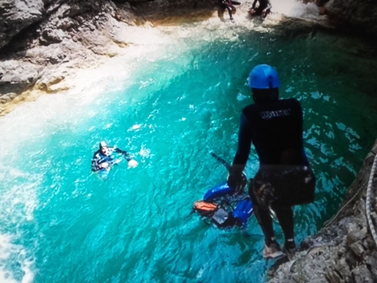 La piscine extérieure a une profondeur de 0,90 m à 2 m.